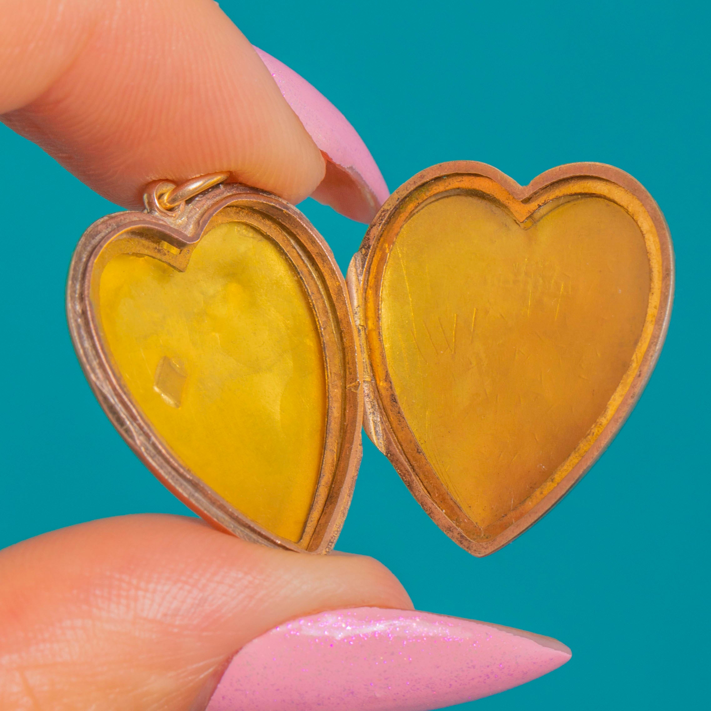 Opening on a sturdy hinge, the two‑leaf locket reveals twin wells ready for cherished mementos. A timeless romantic keepsake, its petite proportions and elegant engraving capture the refined spirit of the Edwardian era.