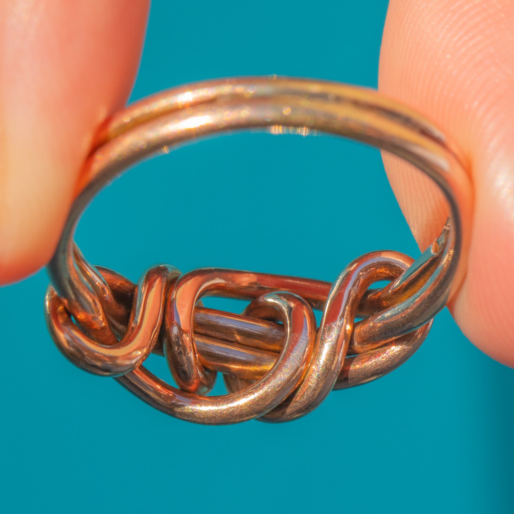 This antique Edwardian knot ring is a wonderful symbol of love and unity, beautifully crafted in 9ct Gold. The bold, interlaced knot design makes a striking statement, with a lovely sense of movement and depth to the polished Gold links.