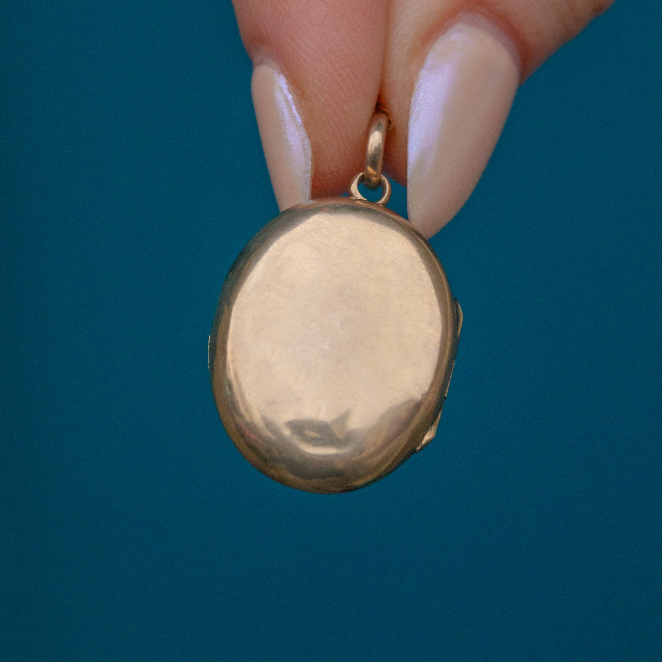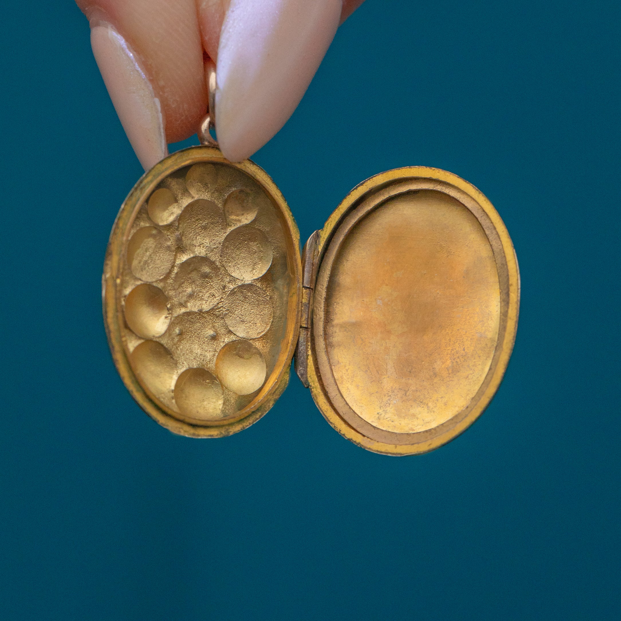 Carved from buttery 9ct Gold, this Edwardian locket features a delicate swallow motif, inlaid with lustrous seed Pearls. This little birdy is accented by three dazzling Rubies, each radiating a gorgeous fuchsia hue.