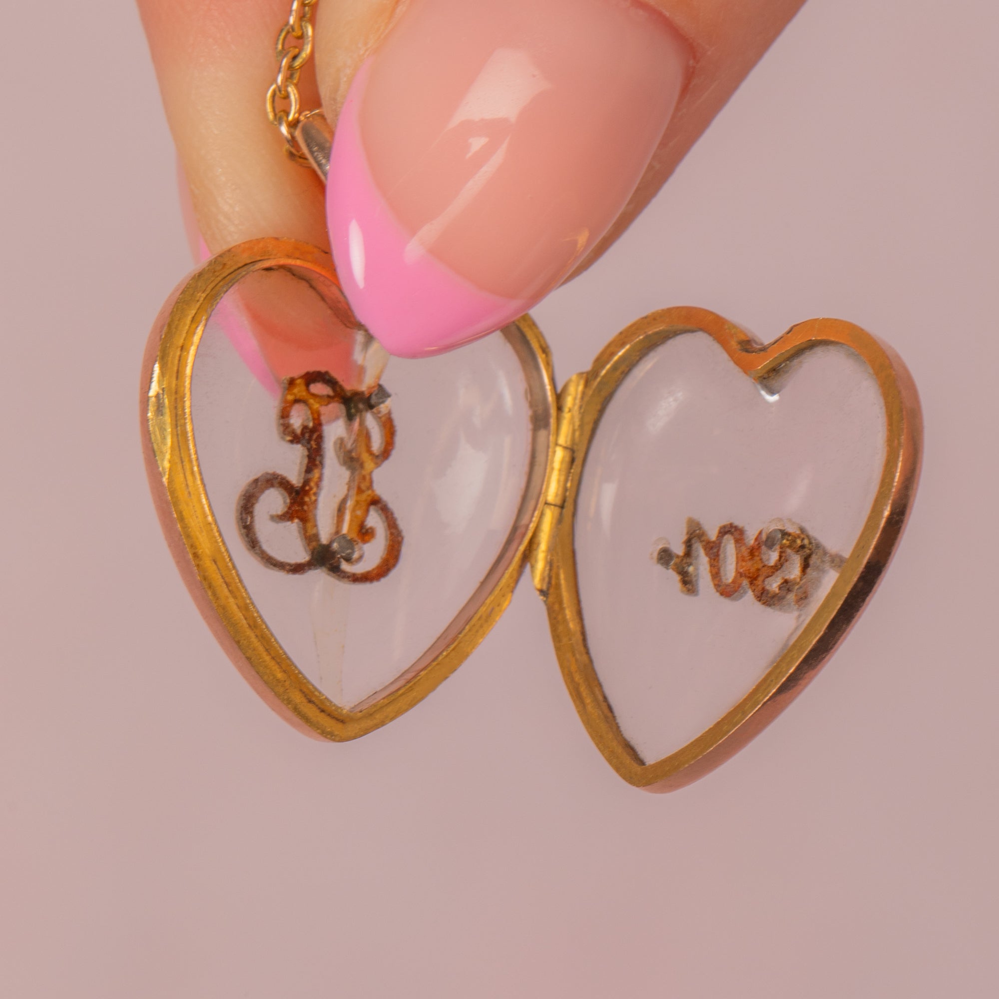 This Edwardian 9ct Gold Rock Crystal heart locket is such a unique treasure! A romantic heart motif, this sweet locket has been made from 9ct Gold and two hand-carved Rock Crystal panes.