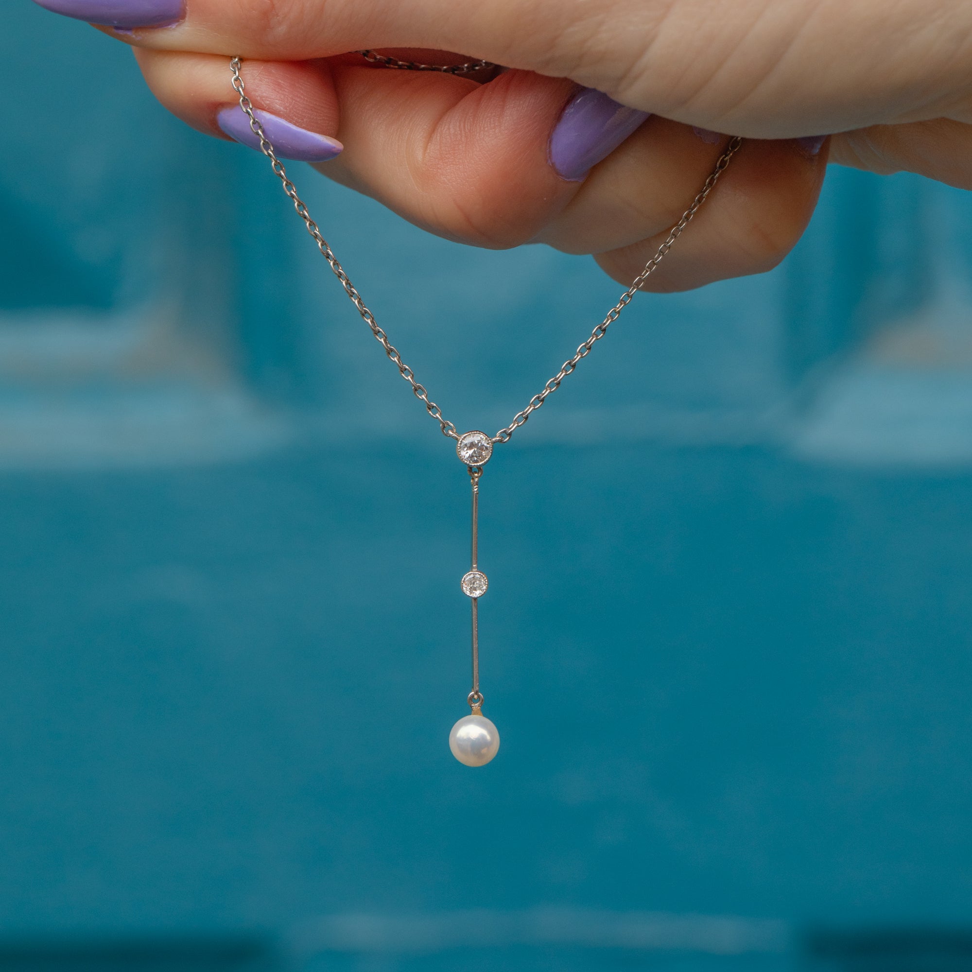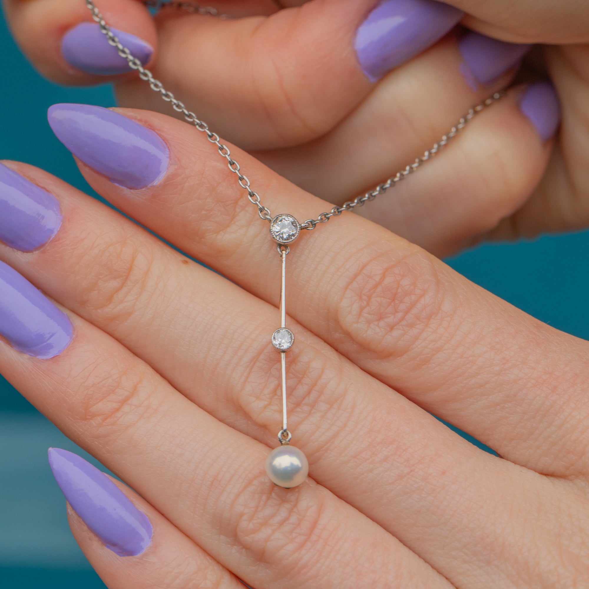 Complete with a lustrous Platinum chain, this sleek and sophisticated Edwardian drop necklace will instantly elevate your outfit!