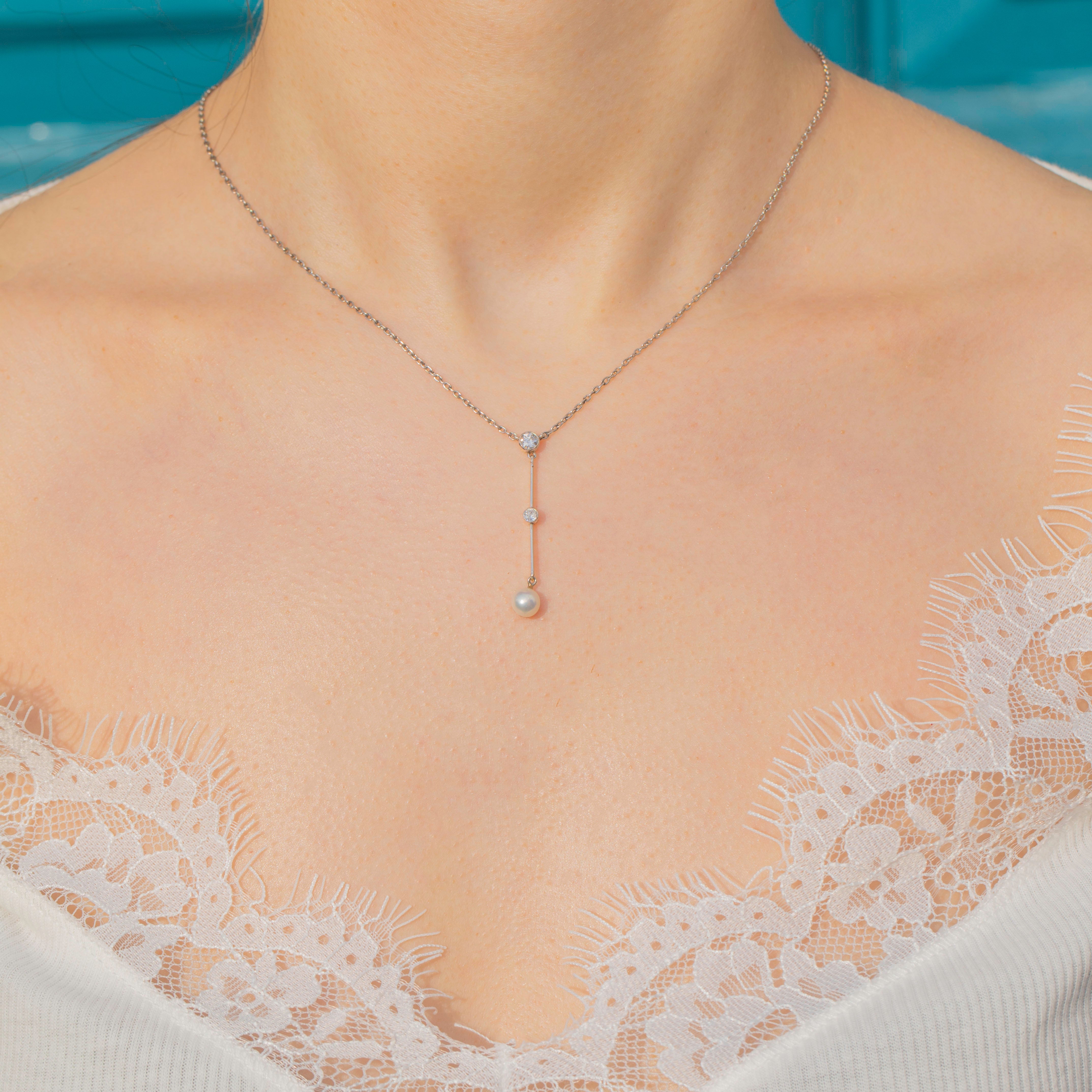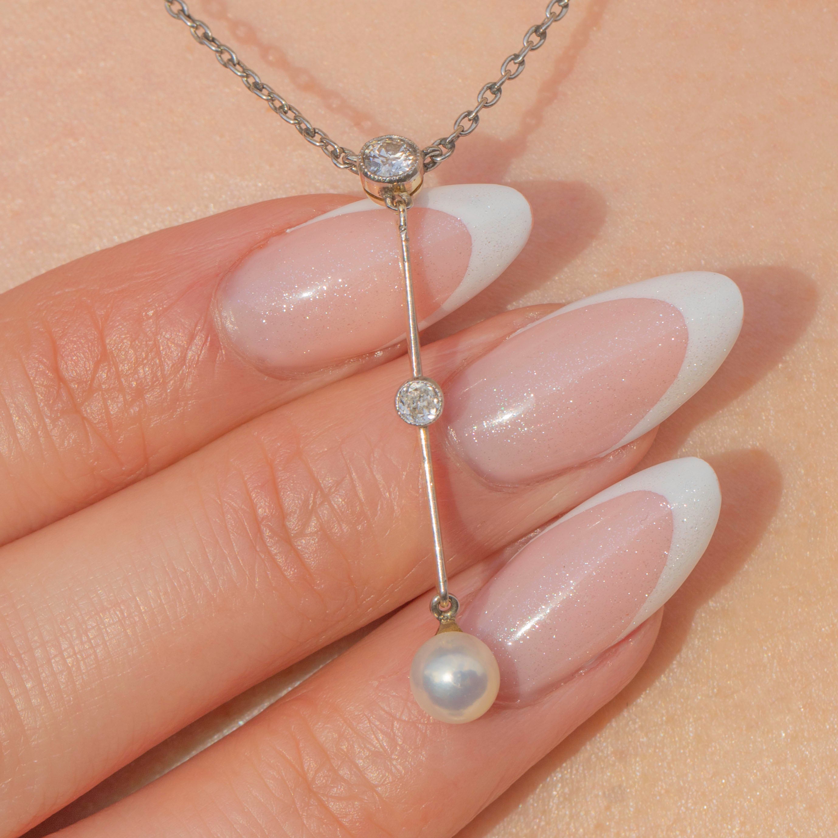 This Edwardian Platinum Diamond Pearl drop necklace is a beauty!