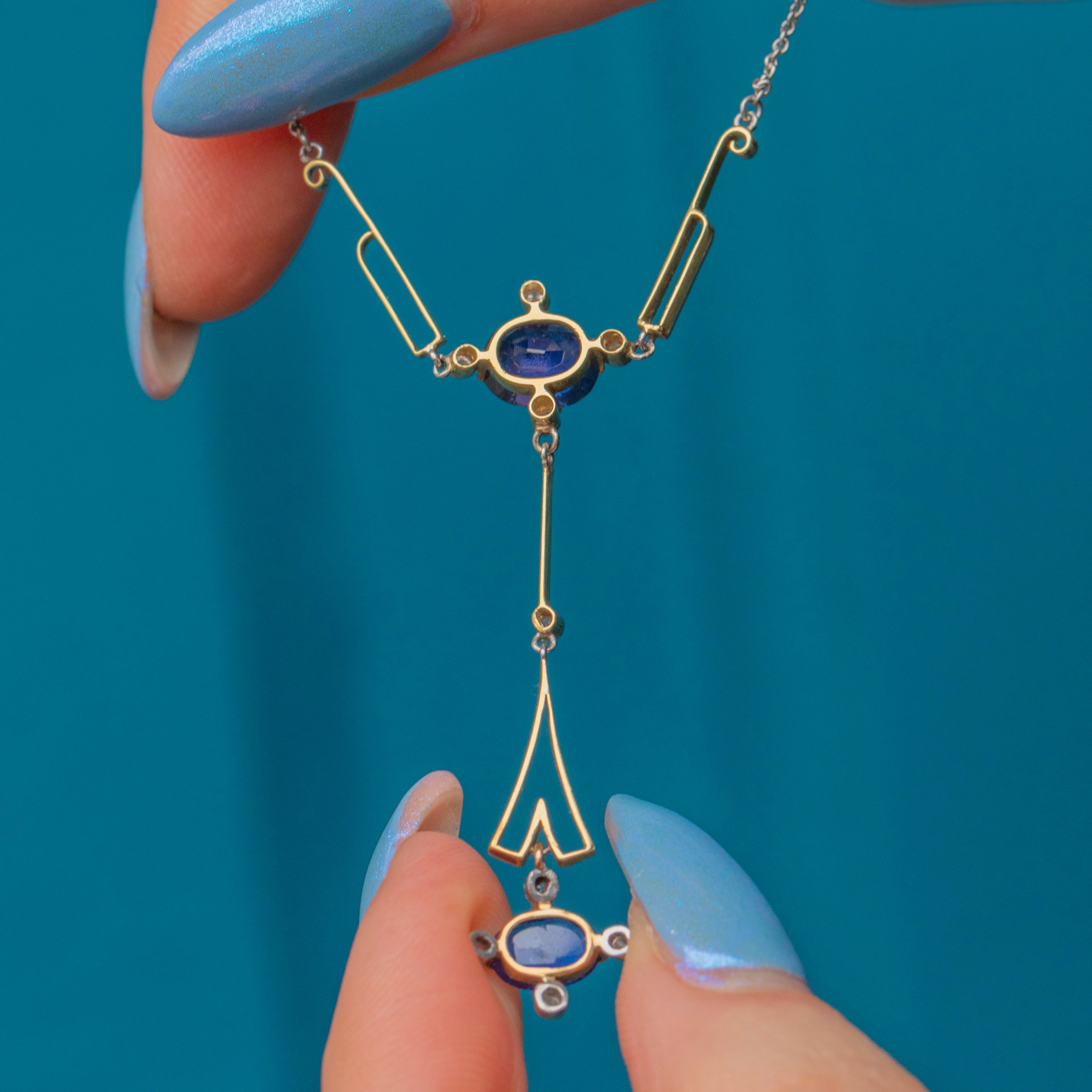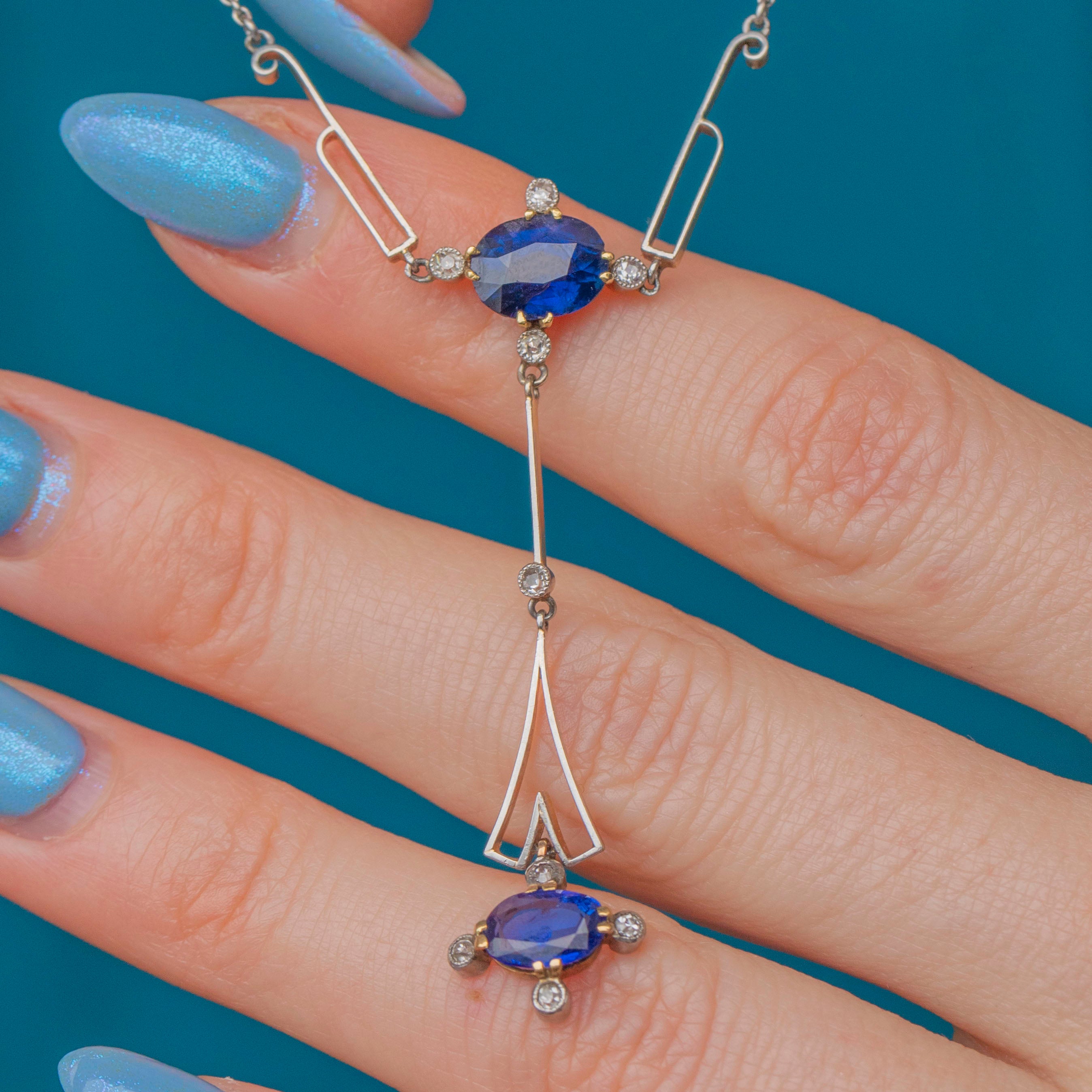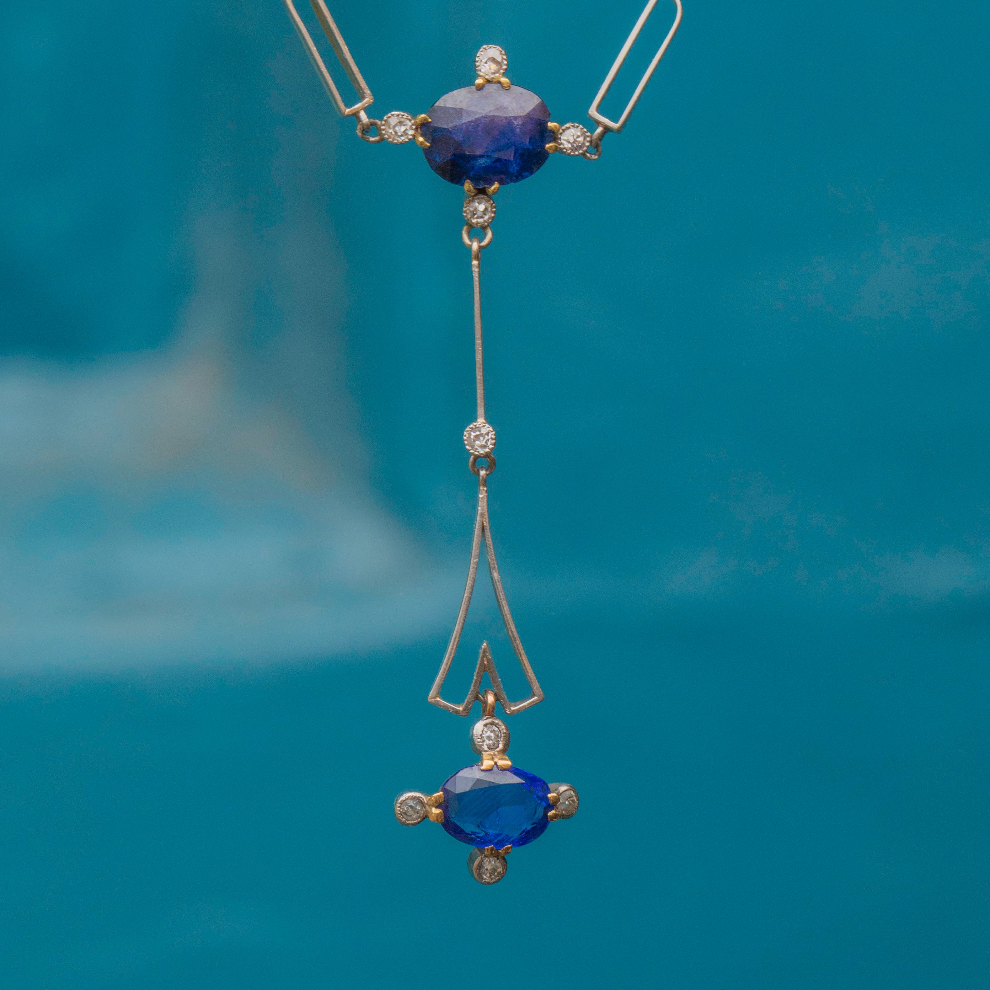 An exquisite display of taste and craftsmanship, this Edwardian natural Sapphire Diamond drop necklace sits beautifully around the neck.