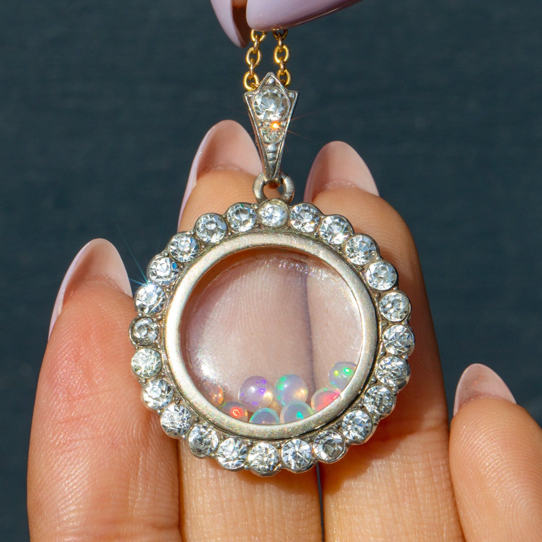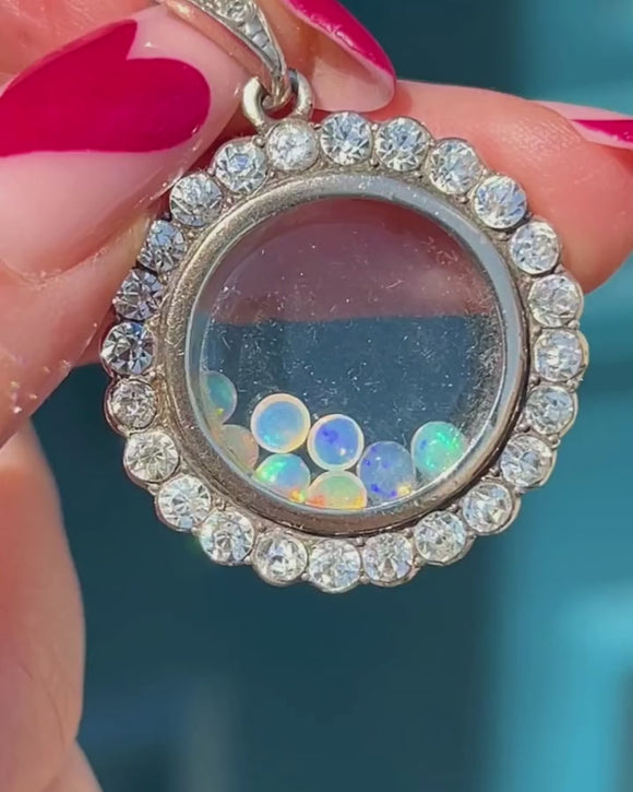 Edwardian Silver Paste Round Shaker Locket, Loose Opals