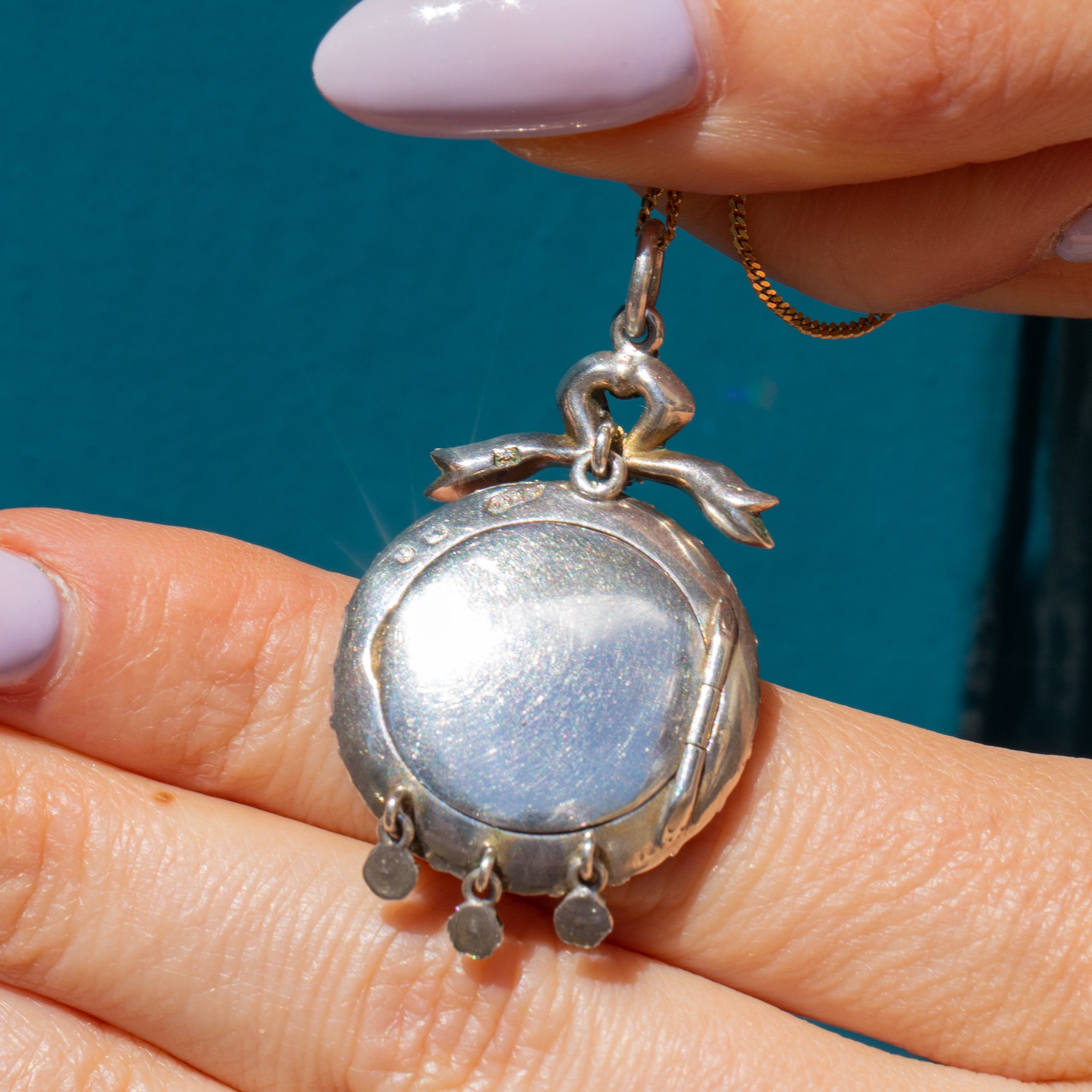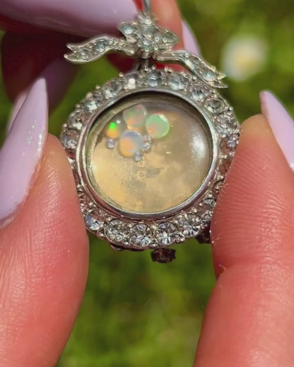 Edwardian Silver Paste Shaker Locket with Bow Top, Loose Opals & Diamonds