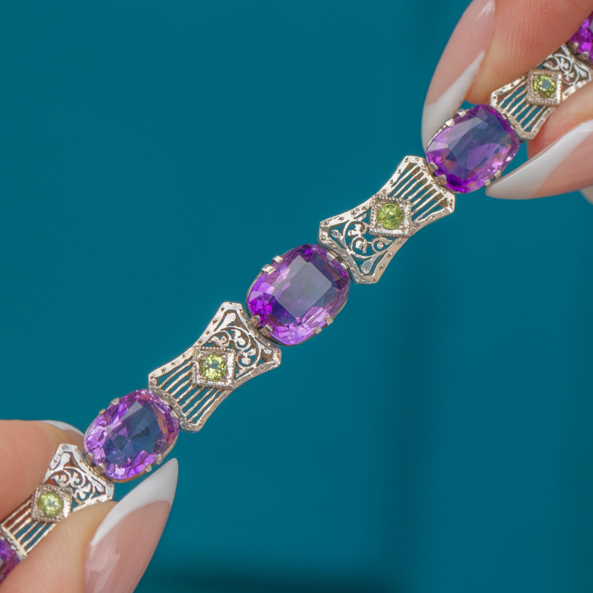 Edwardian Suffragette Amethyst & Peridot Silver Bracelet 7"