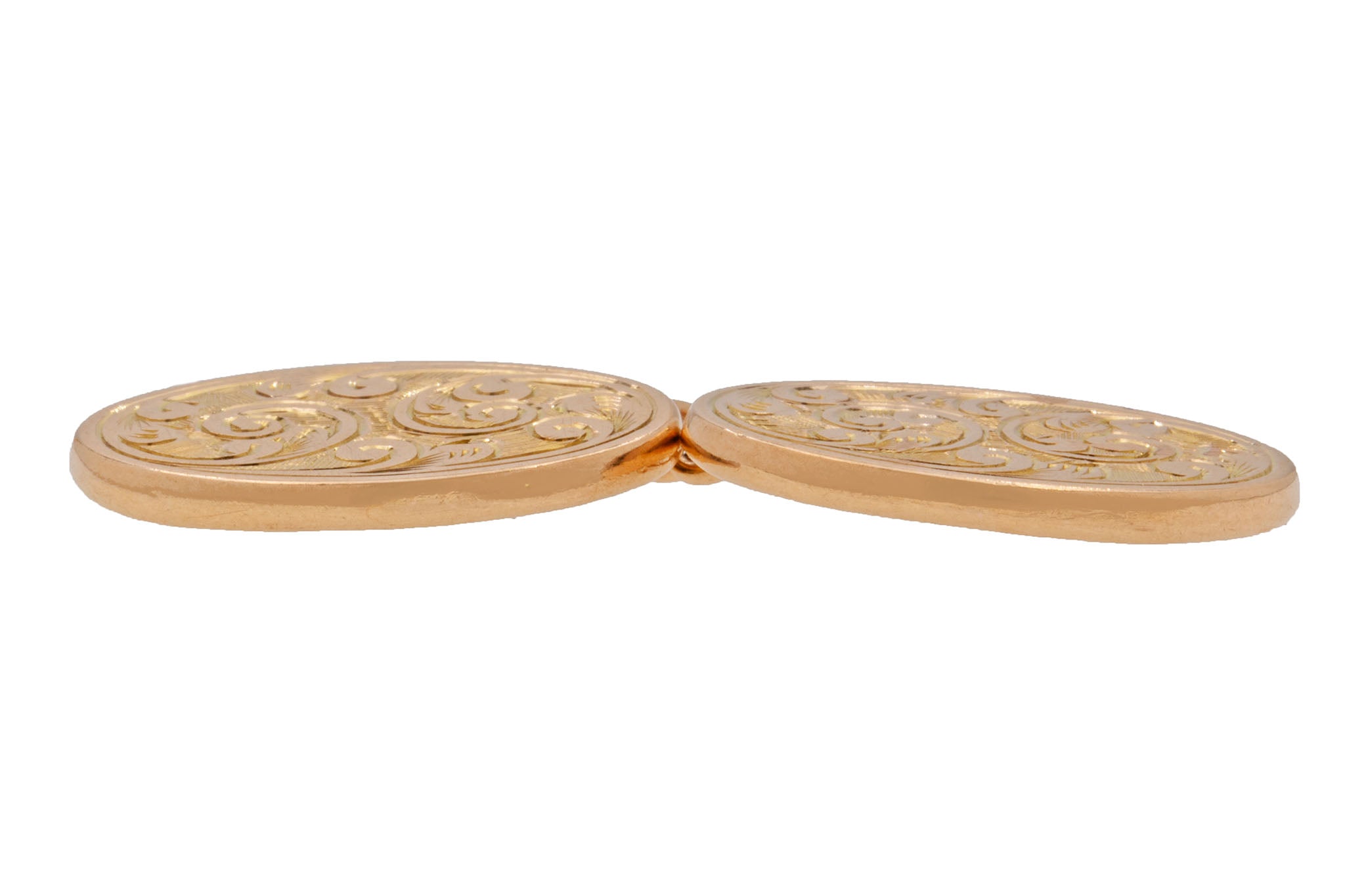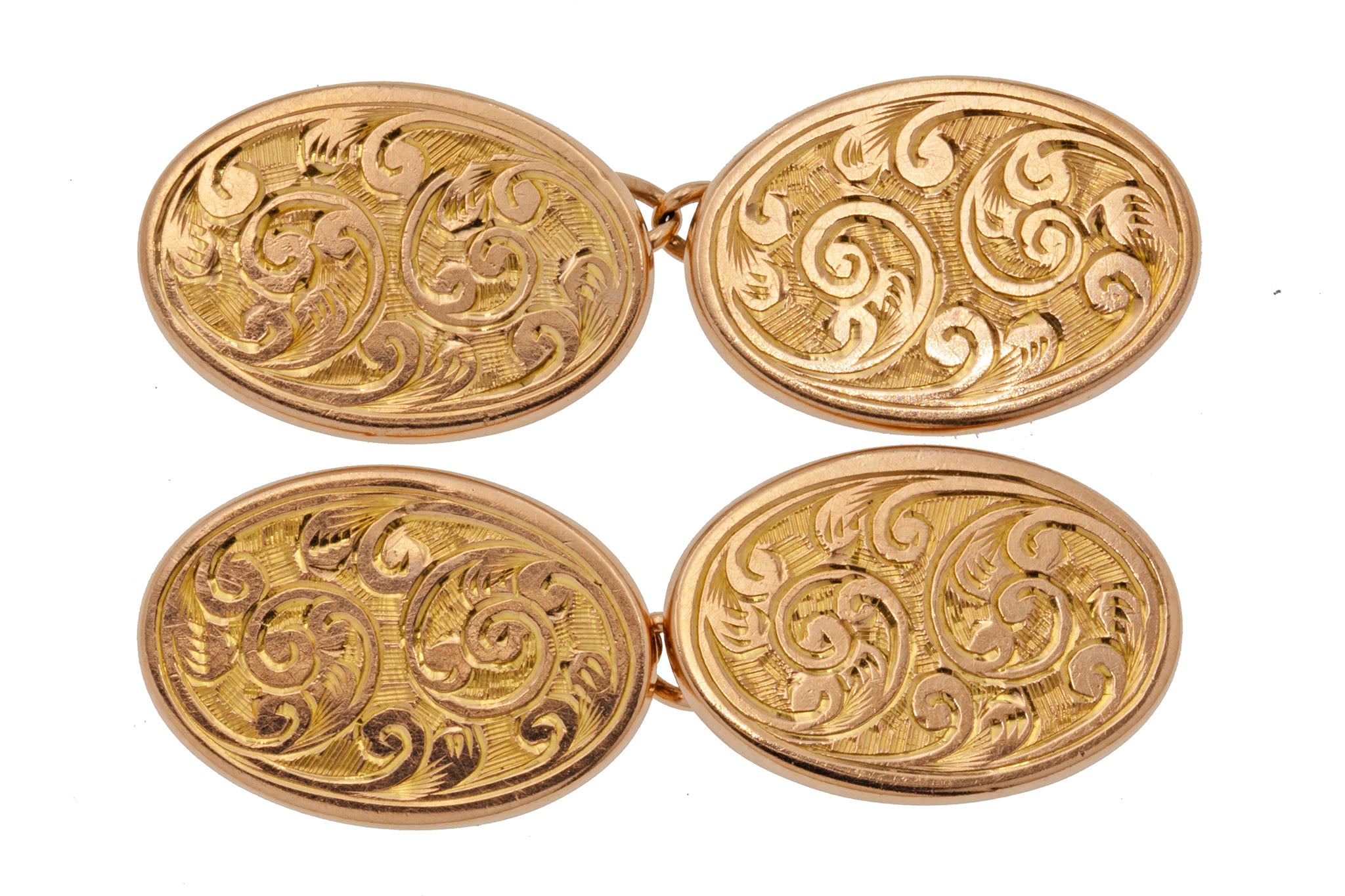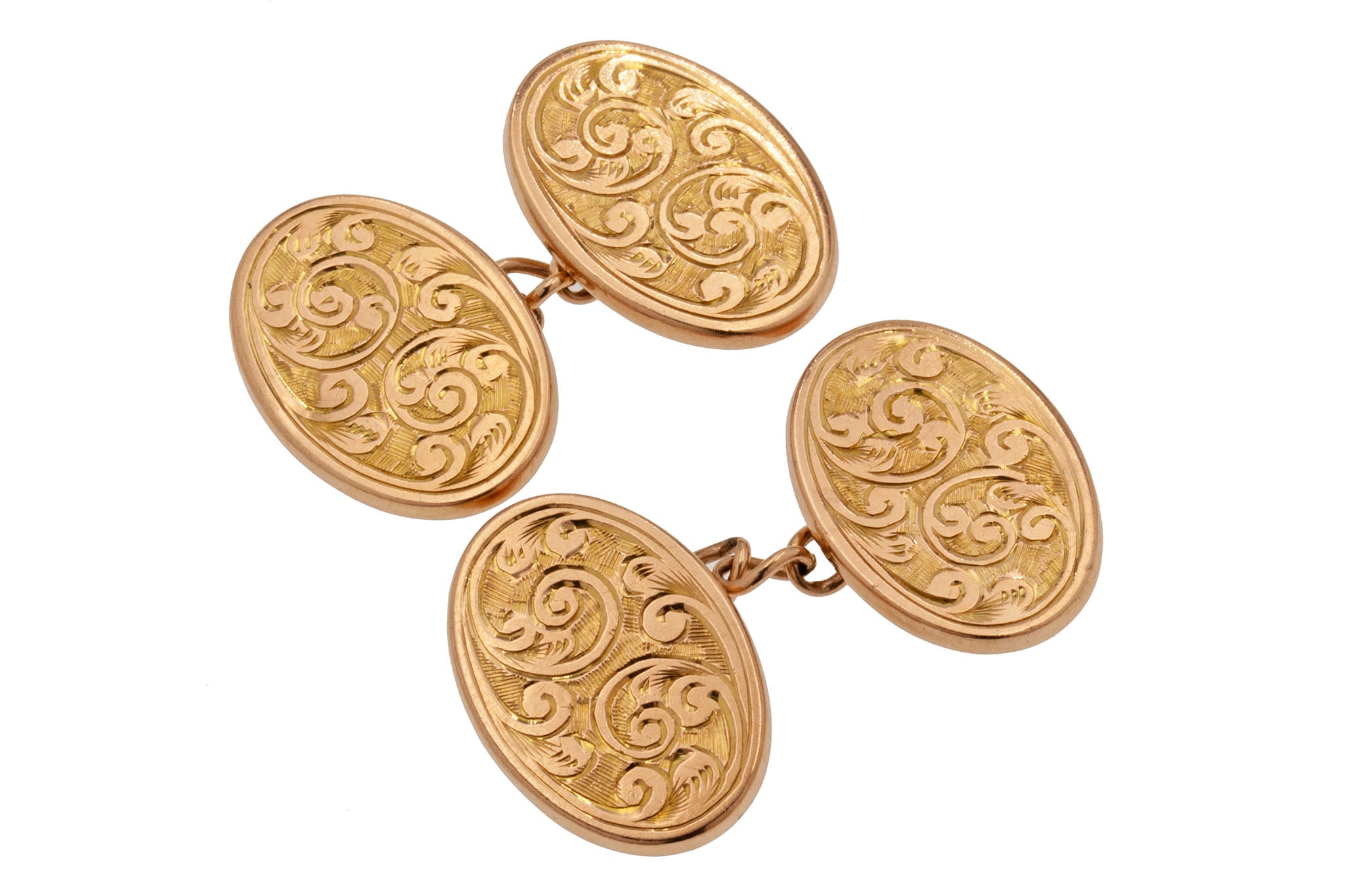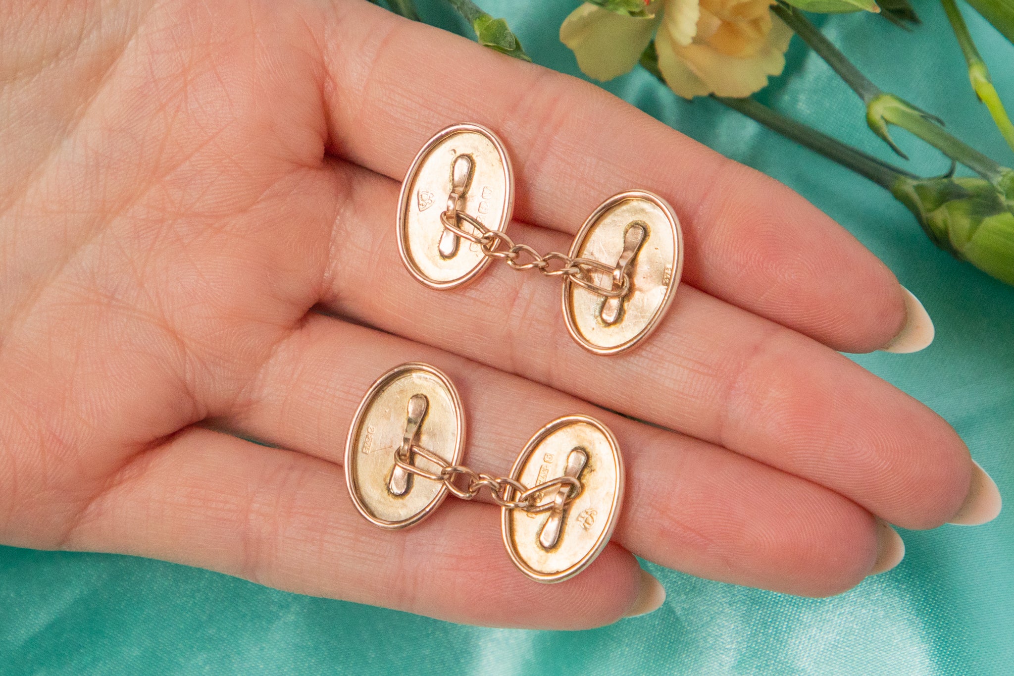 These English Art Deco 9ct Gold engraved cuff links have a beautiful blush tinge, and will add a stunning flash of Gold to your outfits.