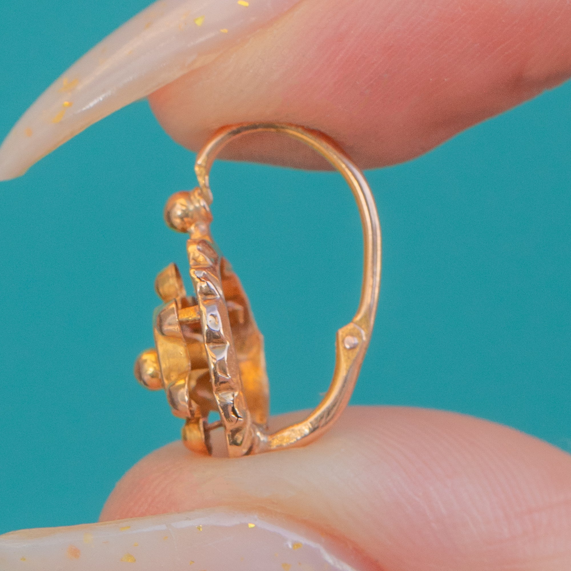 Finished with classic lever-back fittings, these are the kind of earrings that feel effortlessly wearable — the perfect little hit of antique Gold detail that elevates everything from knitwear to occasion dressing.