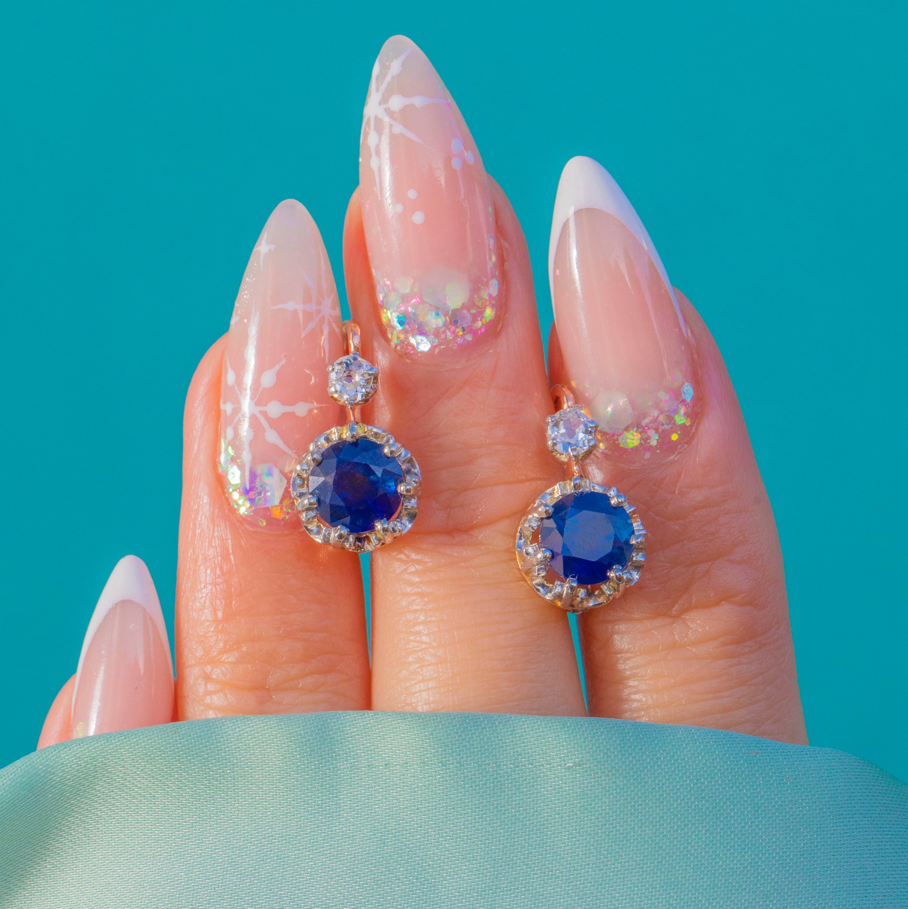 Hand-worked claws and the traditional hinged dormeuse fittings speak to late 19th-century French finesse, while the petite proportions make them perfect for everyday luxury or evening poise. The Sapphires offer rich, velvety colour; the Diamonds bring crisp light—an effortlessly wearable pair from c.1890–1900.