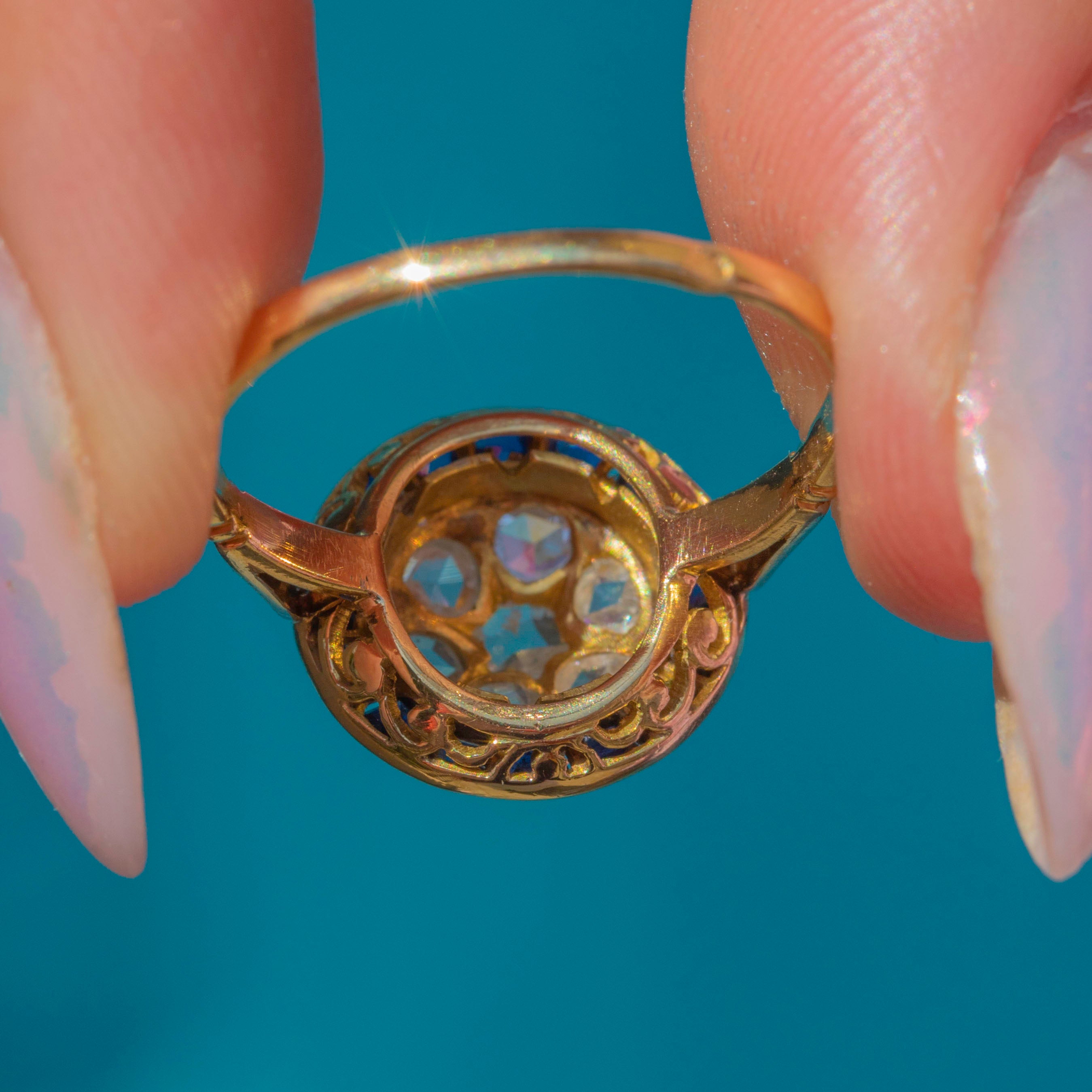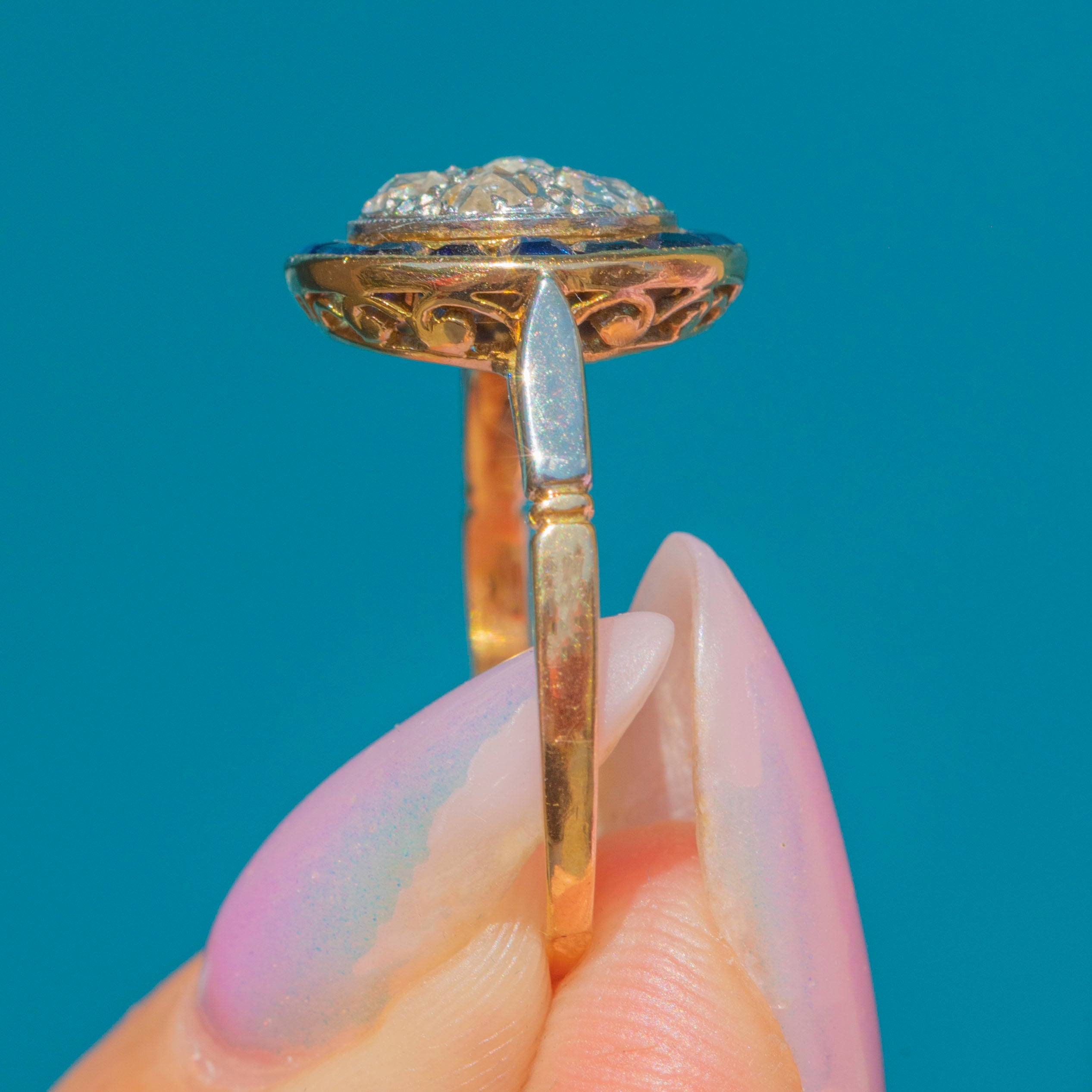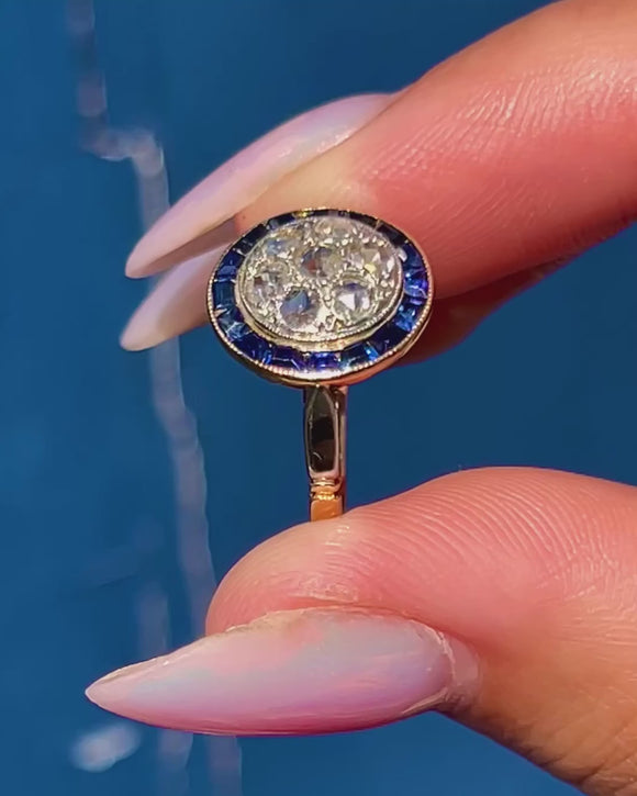 French Art Deco 18ct Gold Sapphire Diamond Target Cluster Ring
