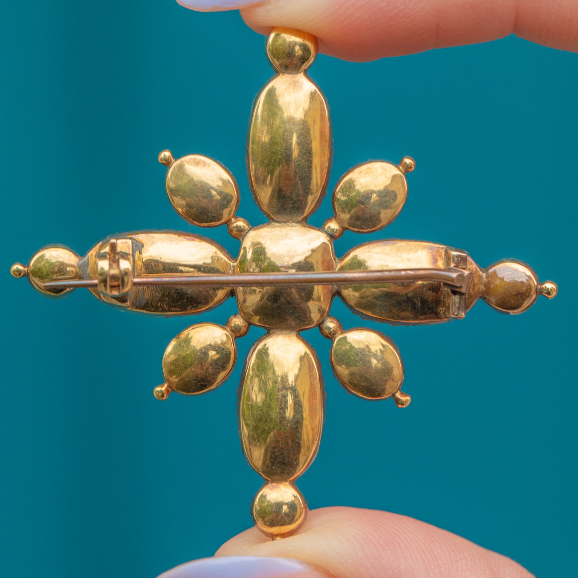 Georgian 15ct Gold Flat-Cut Garnet Maltese Cross Brooch, 6.80ct