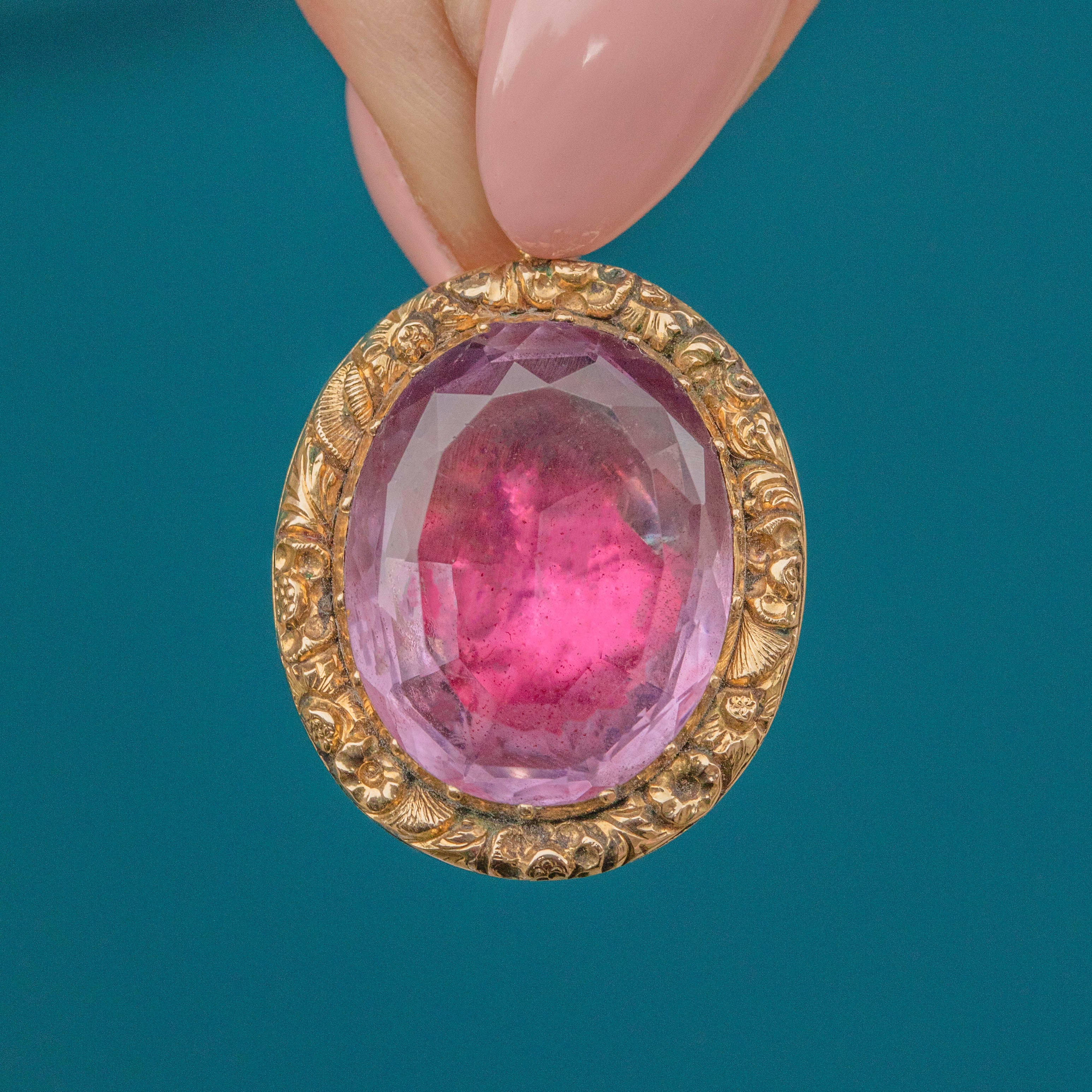 VERY GOOD-EXCELLENT. This Georgian 15ct Gold foiled Amethyst pendant is in superb condition. Her large antique Amethyst radiates gorgeous pink and purple tones, and sits securely within her bezel setting, allowing for comfortable and confident wear. The warm yellow 15ct Gold has some minor signs of wear consummate with age, however this does not detract from her beauty. This Georgian Amethyst pendant is a true must-have!