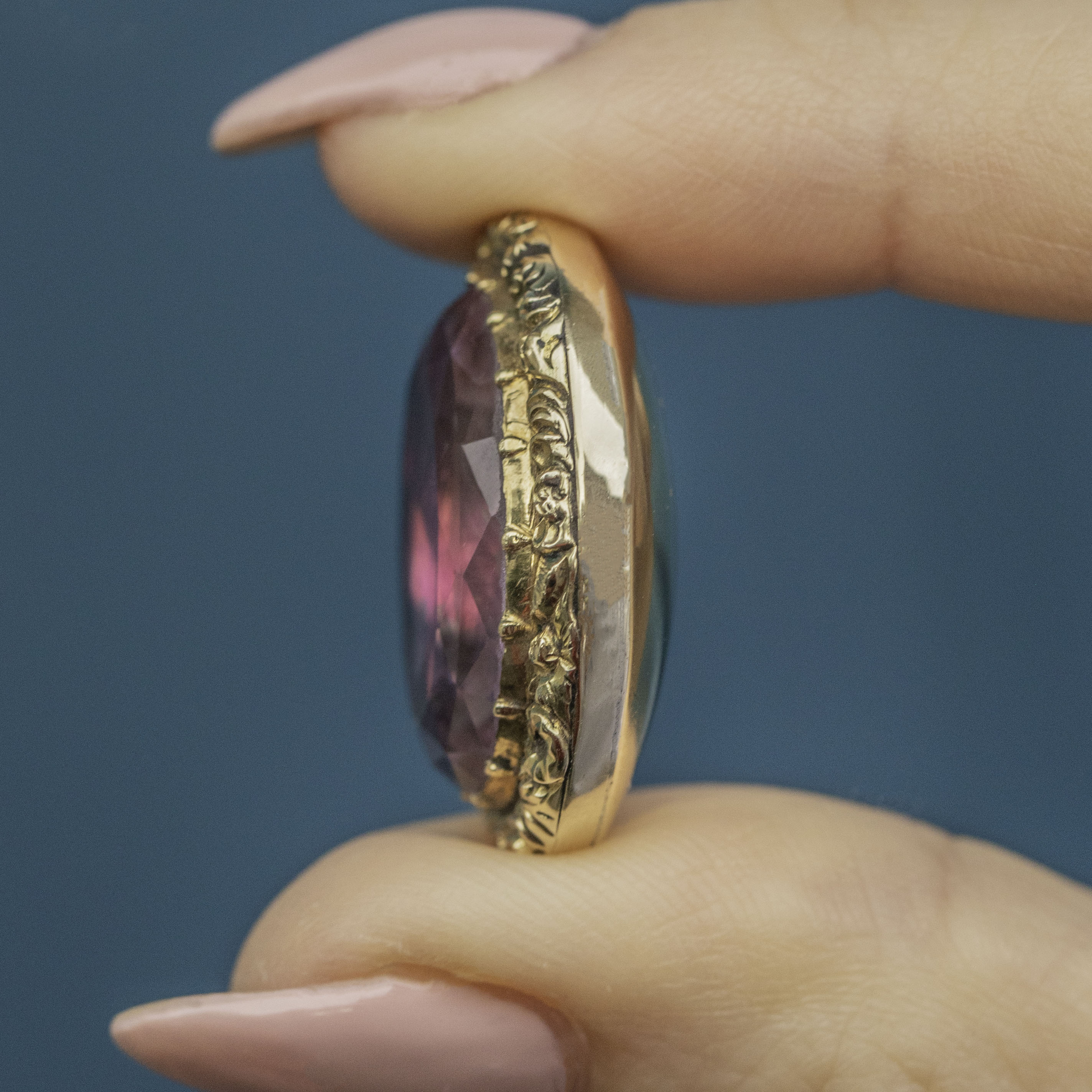 MATERIALS: Tests as 15ct Gold, Foiled Amethyst (6.65ct).