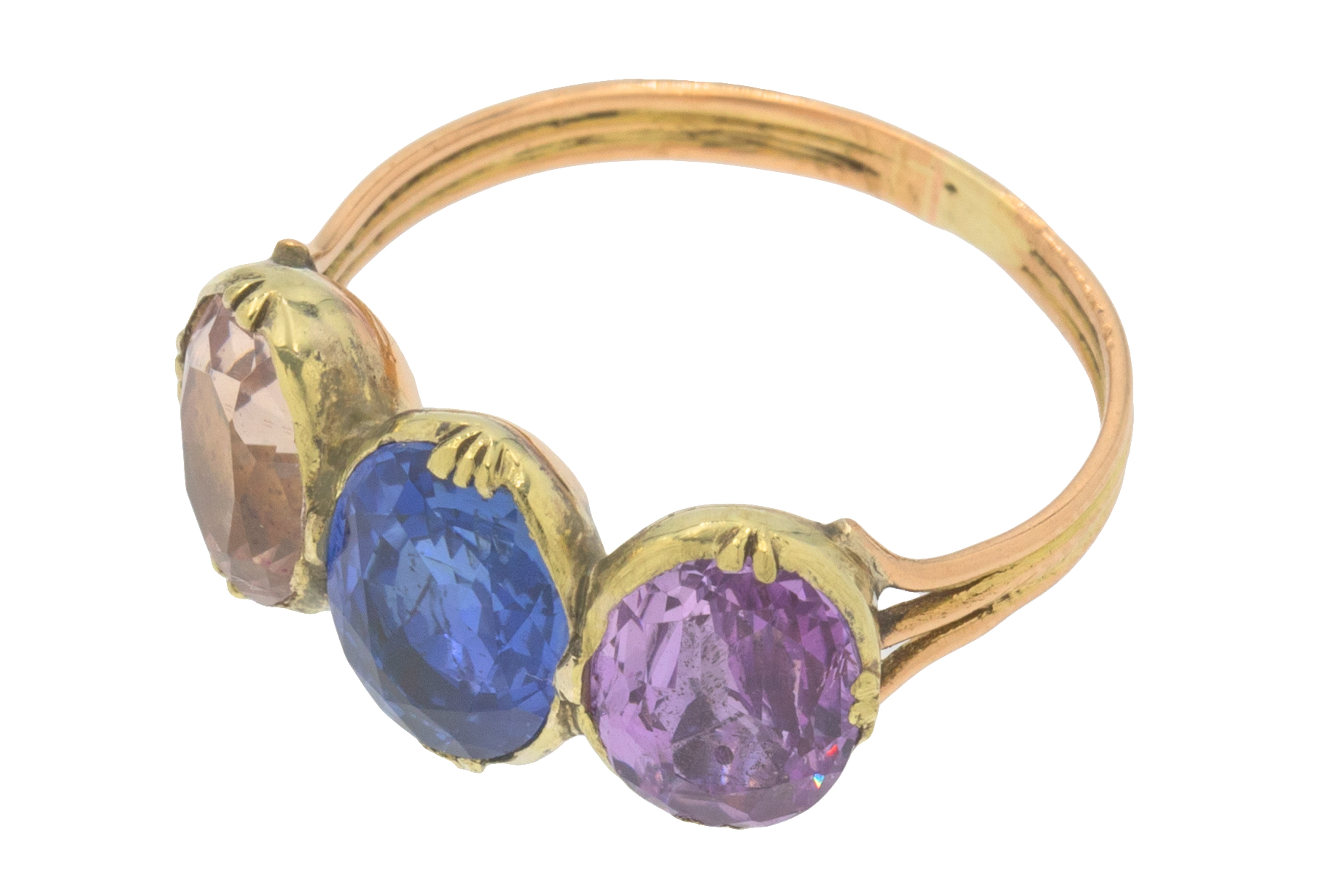 Georgian 15ct Gold Sapphire Trilogy Ring, 4.00ct
