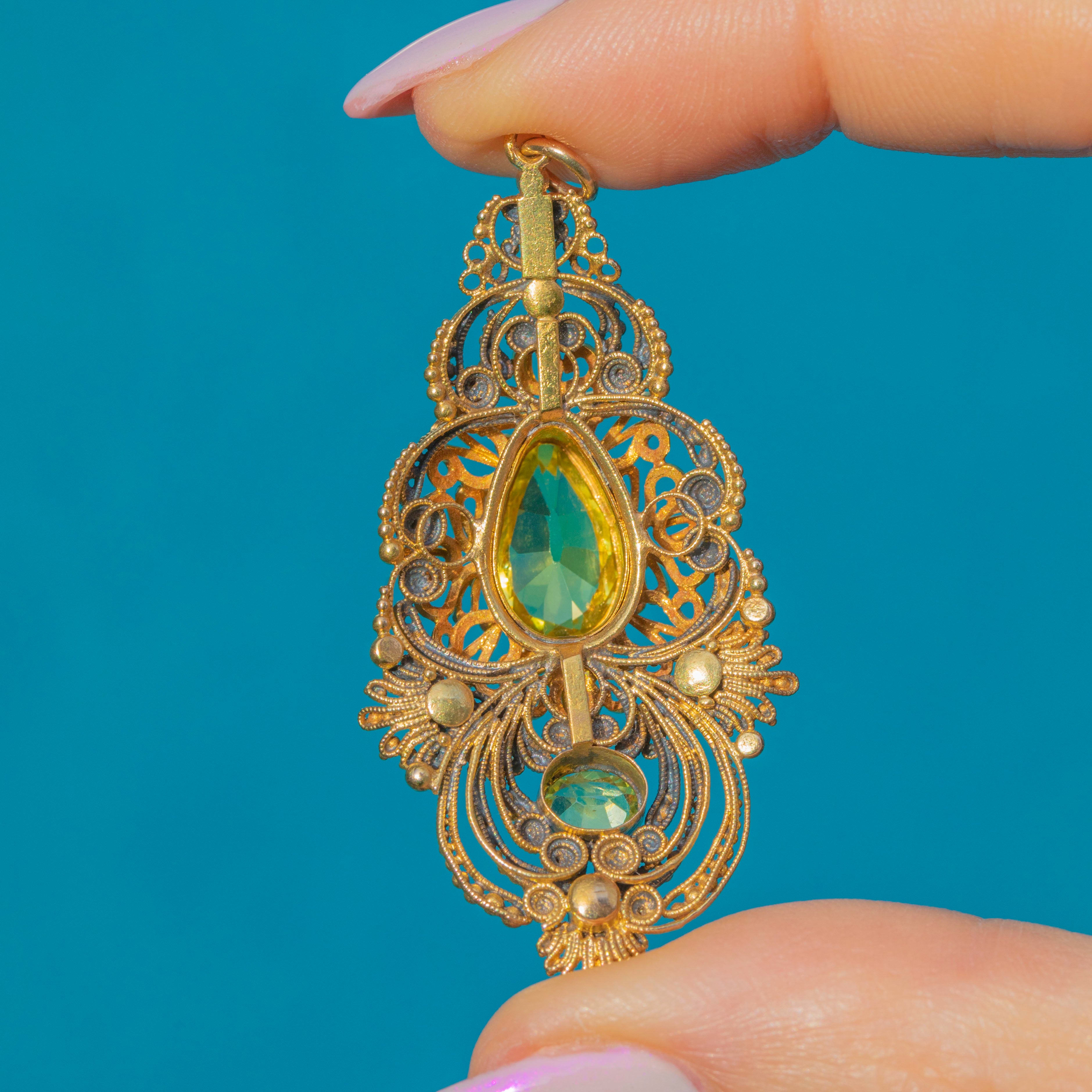 A magnificent Georgian drop pendant crafted in rich 18ct Gold with exquisite cannetille gold-work.