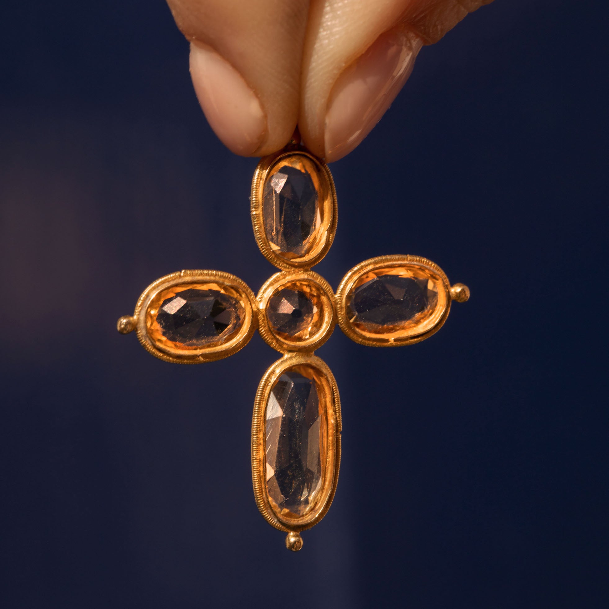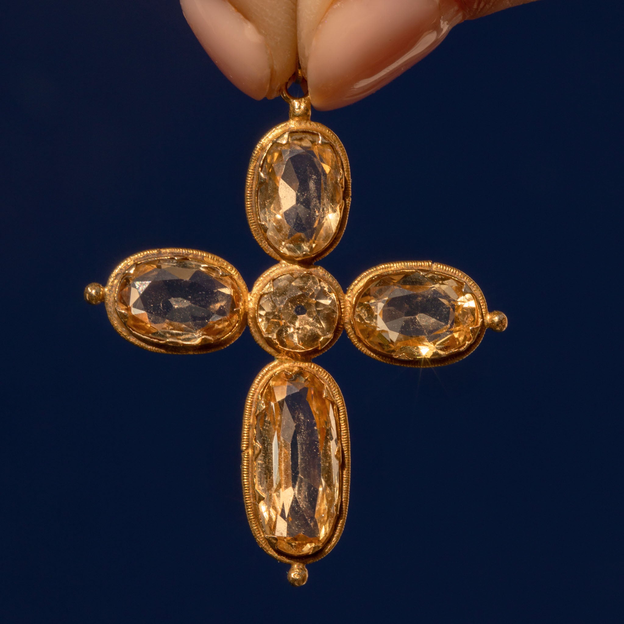 Georgian 18ct Gold Citrine Cross Pendant, 4.25ct