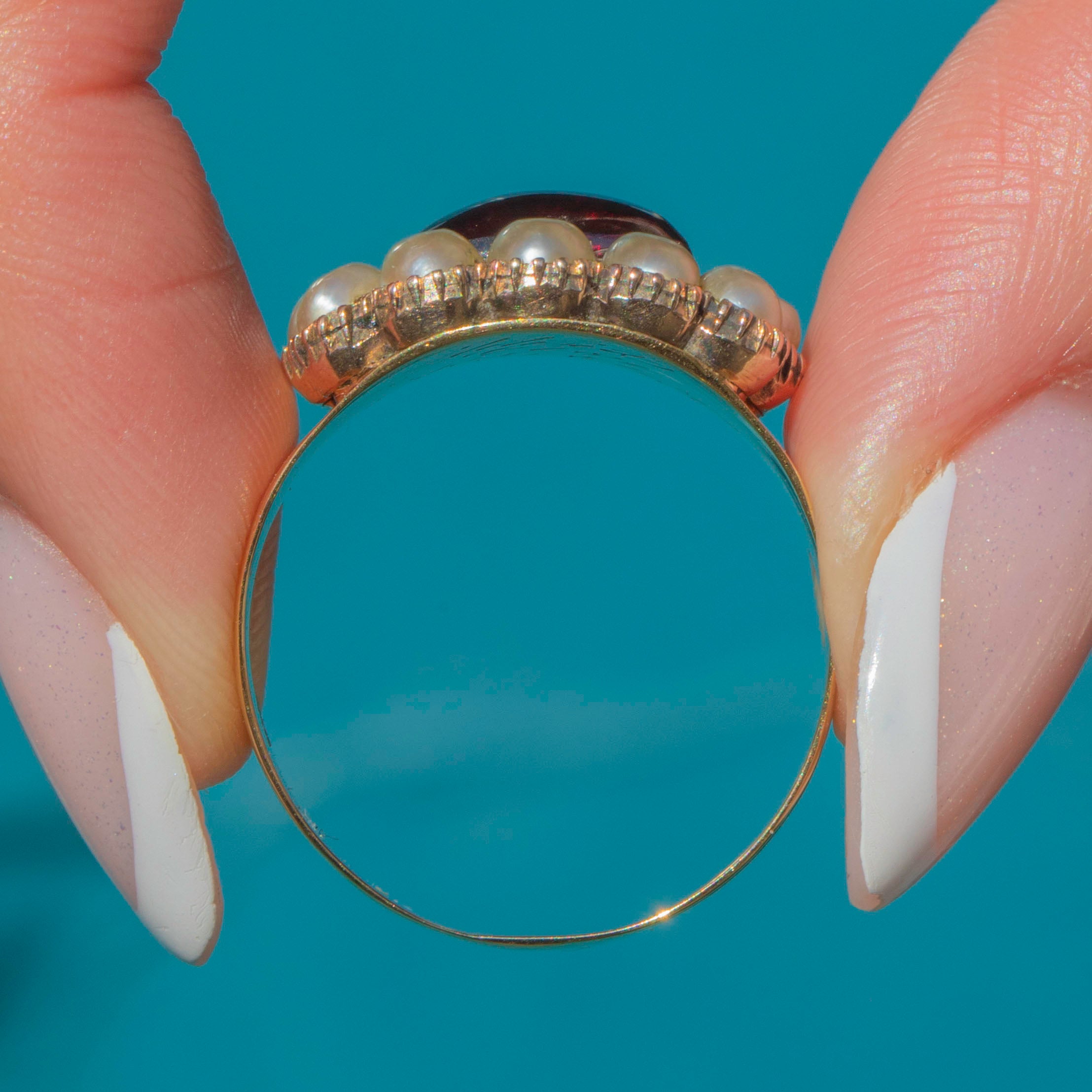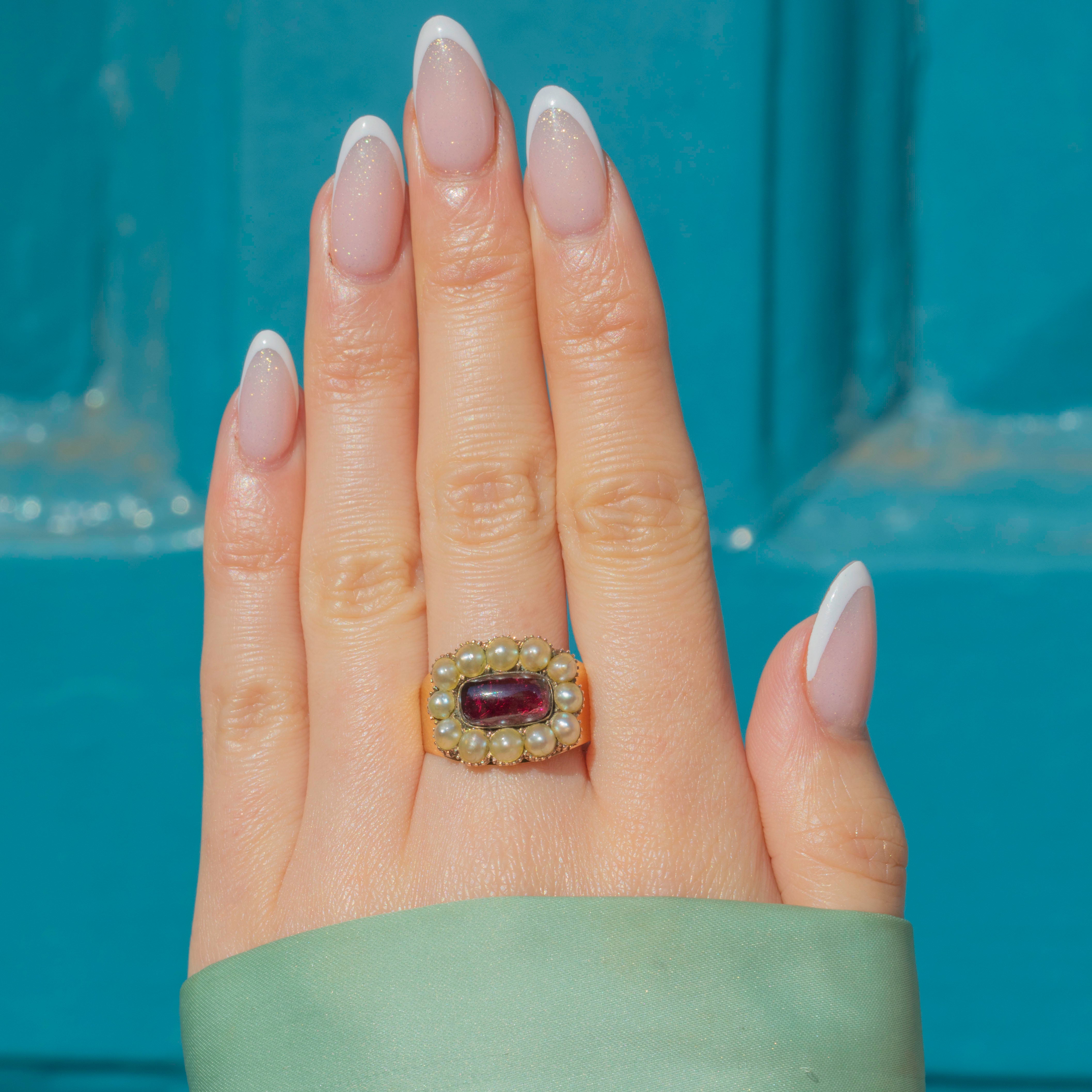 18ct Gold Georgian Garnet Cabochon Pearl Cluster Ring 1.60ct, c.1814 Item added