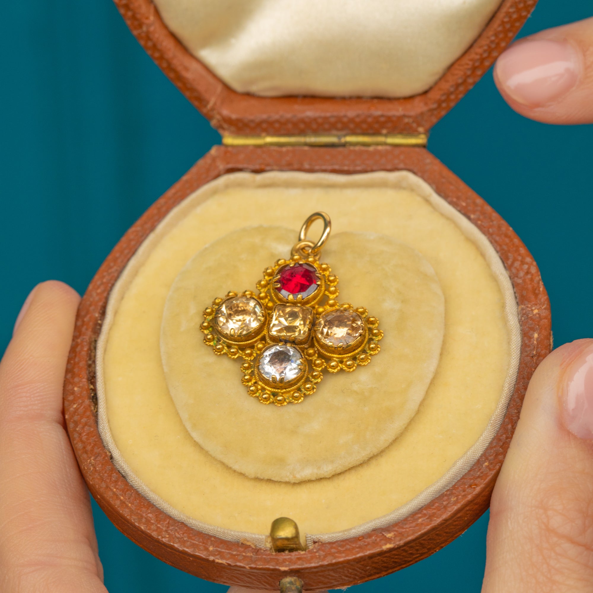 Georgian 18ct Gold Garnet & Topaz Harlequin Pendant, Fitted Box