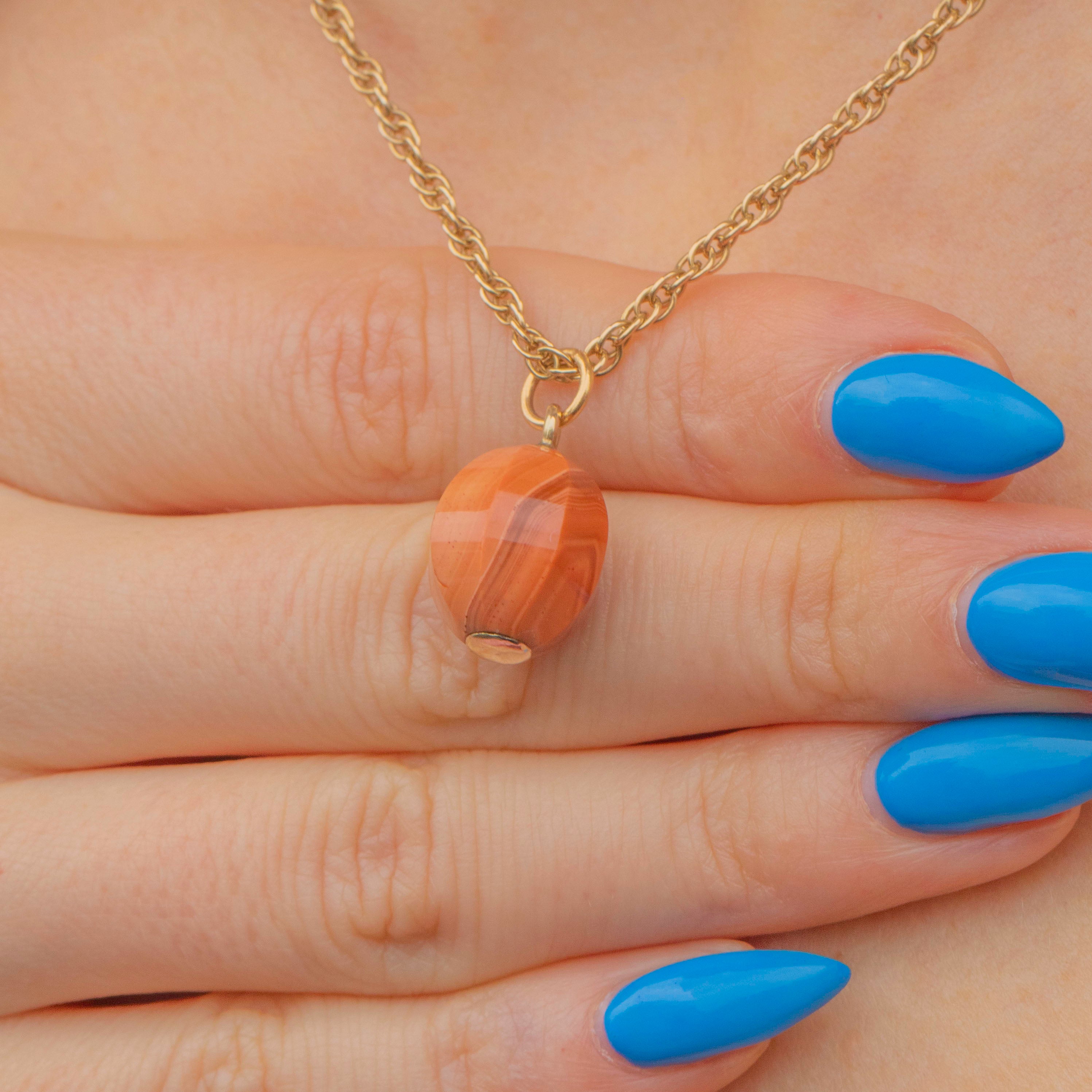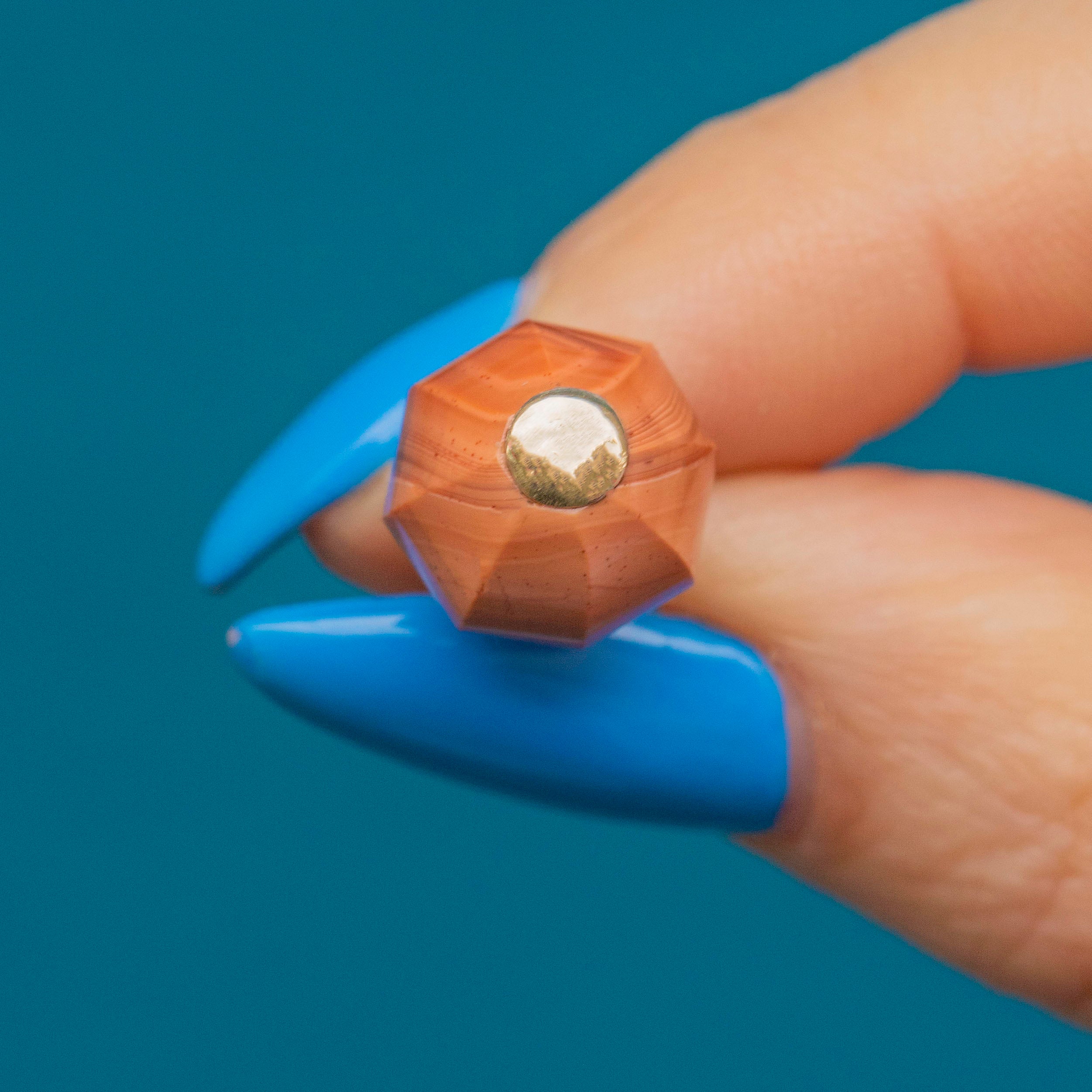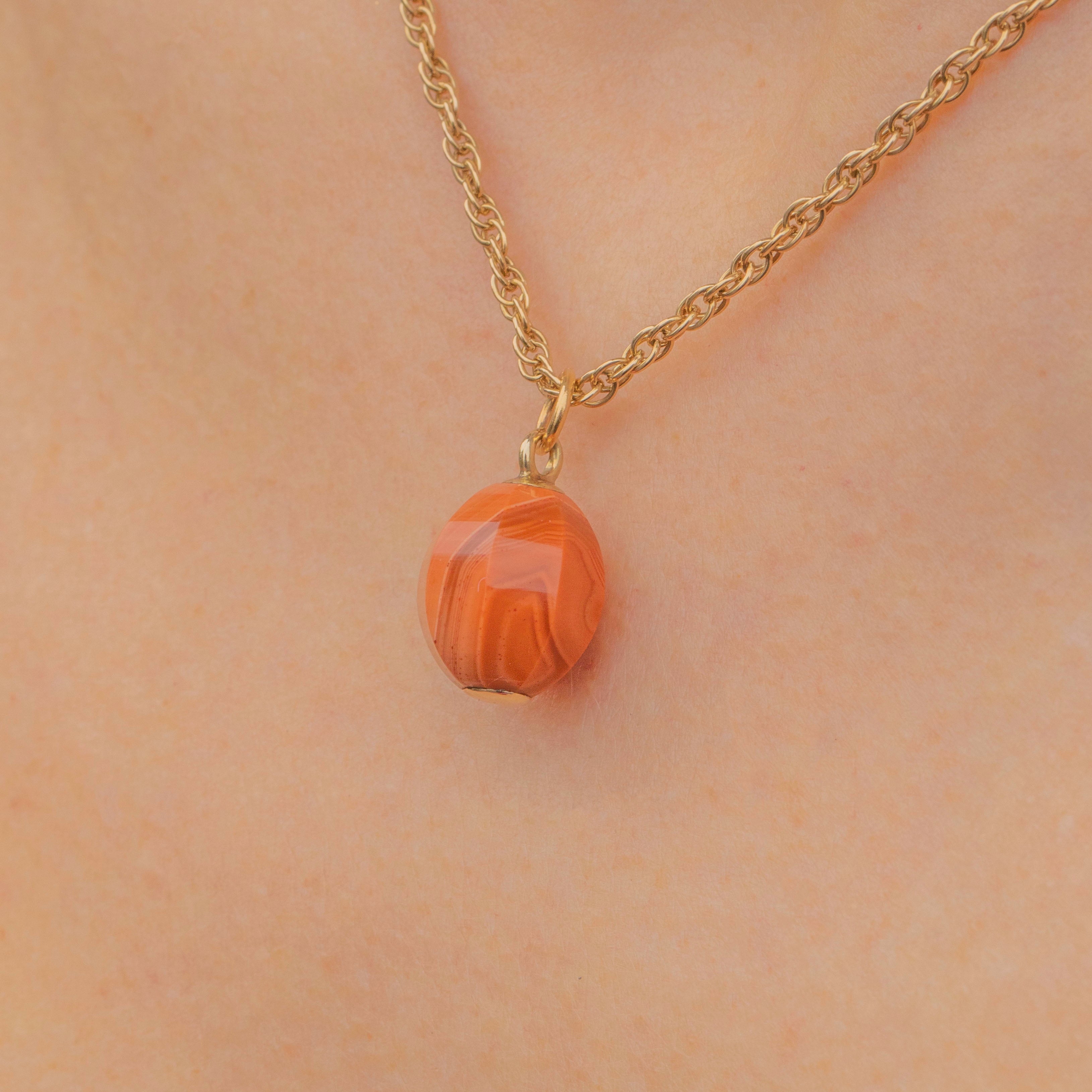 This Georgian 9ct Gold Brown Jasper Agate lantern pendant is a certified treat (no trick)! A burnt orange Jasper Agate is carved in the shape of a lantern - just like your own little halloween pumpkin!