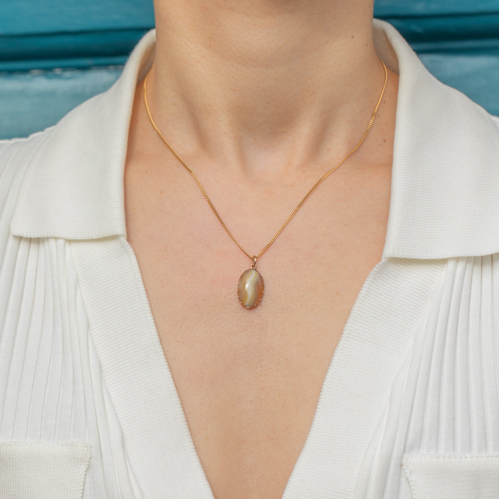 VERY GOOD-EXCELLENT: This Georgian 9ct Gold cased Agate charm is in lovely condition. The Agate is radiant and free from any scuffs or scratches. There is some light surface wear to the 9ct cased Gold setting, though this is minor and commensurate with age. With a secure jump ring, she can be worn with confidence!