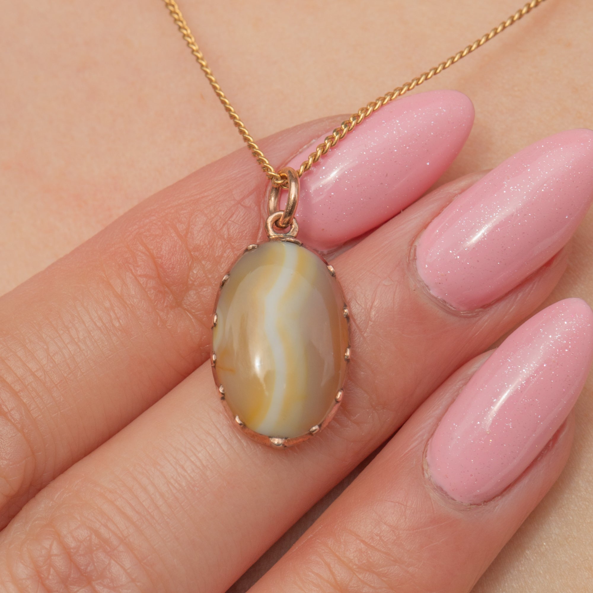 In her centre sits a gorgeous Agate stone, boasting earthy hues and complete with distinctive white bands running down the centre of the stone, akin to the surface of Jupiter.