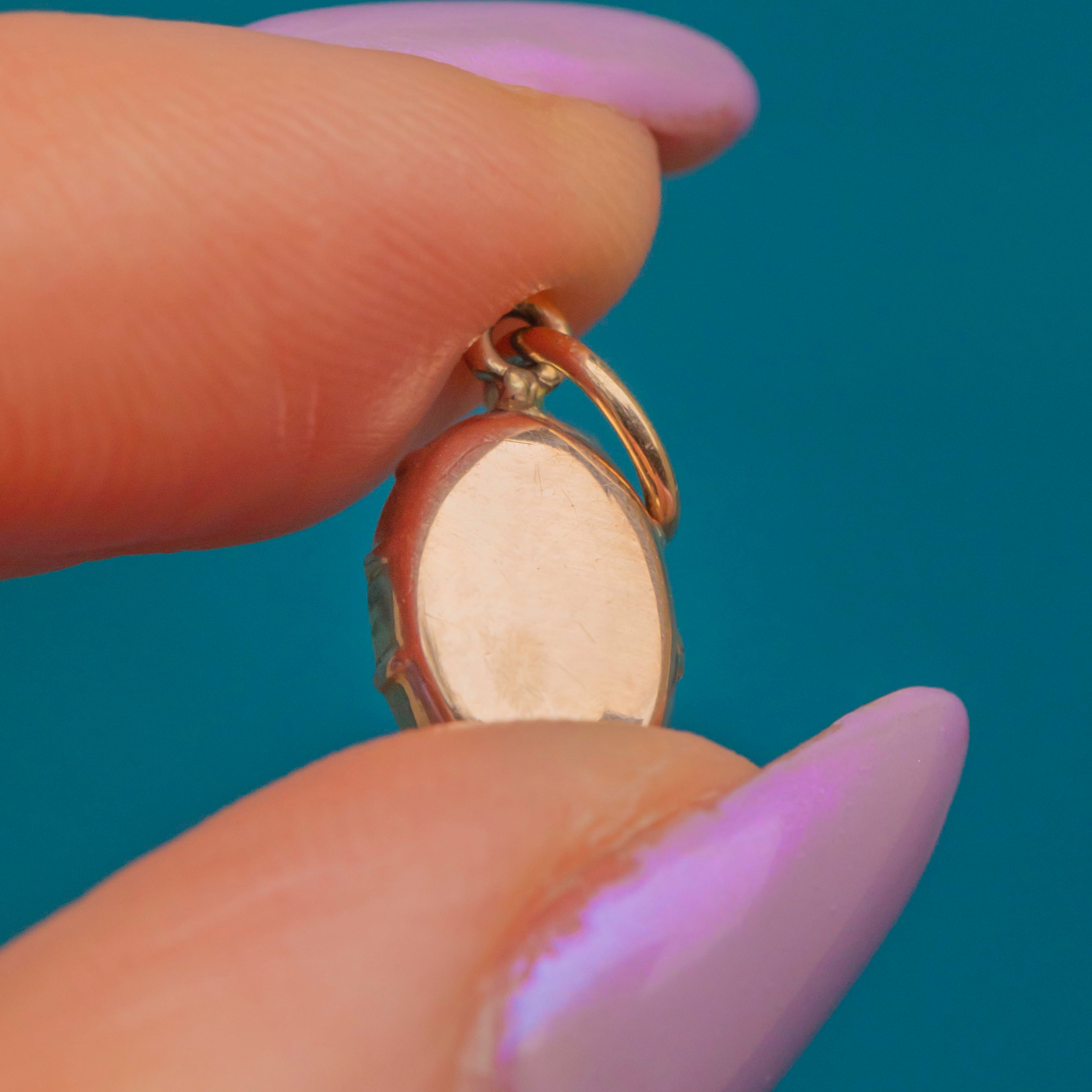 GOOD. This Georgian 9ct Gold flat-cut Garnet charm is in good condition. The Garnet is secure within her 9ct settings, it does have a chip on the left-hand side but this does not take away from her prestige. There are signs of wear commensurate with age but the Gold has retained a wonderful buttery tone and when considering she is over 200 years old, she's a remarkable piece!
