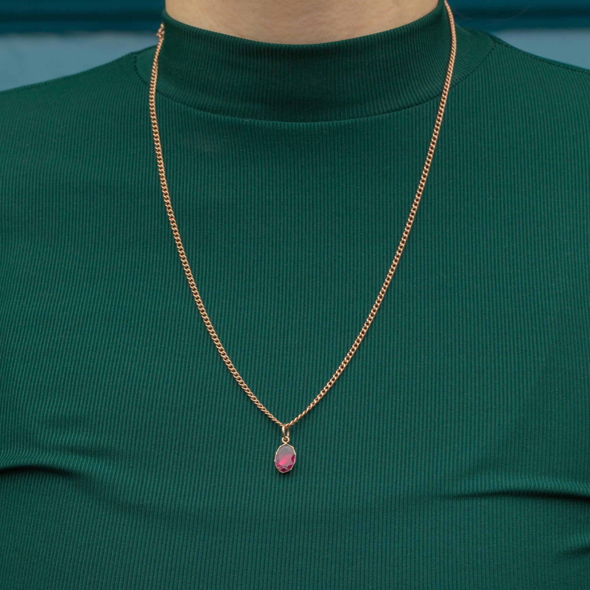 The 0.65ct Garnet has a striking crimson intensity, enhanced by its foiled back, and is displayed within a classically Georgian piecrust setting. She looks wonderful when hanging from a fine Gold chain, which can be worn on both casual and dressy occasions!