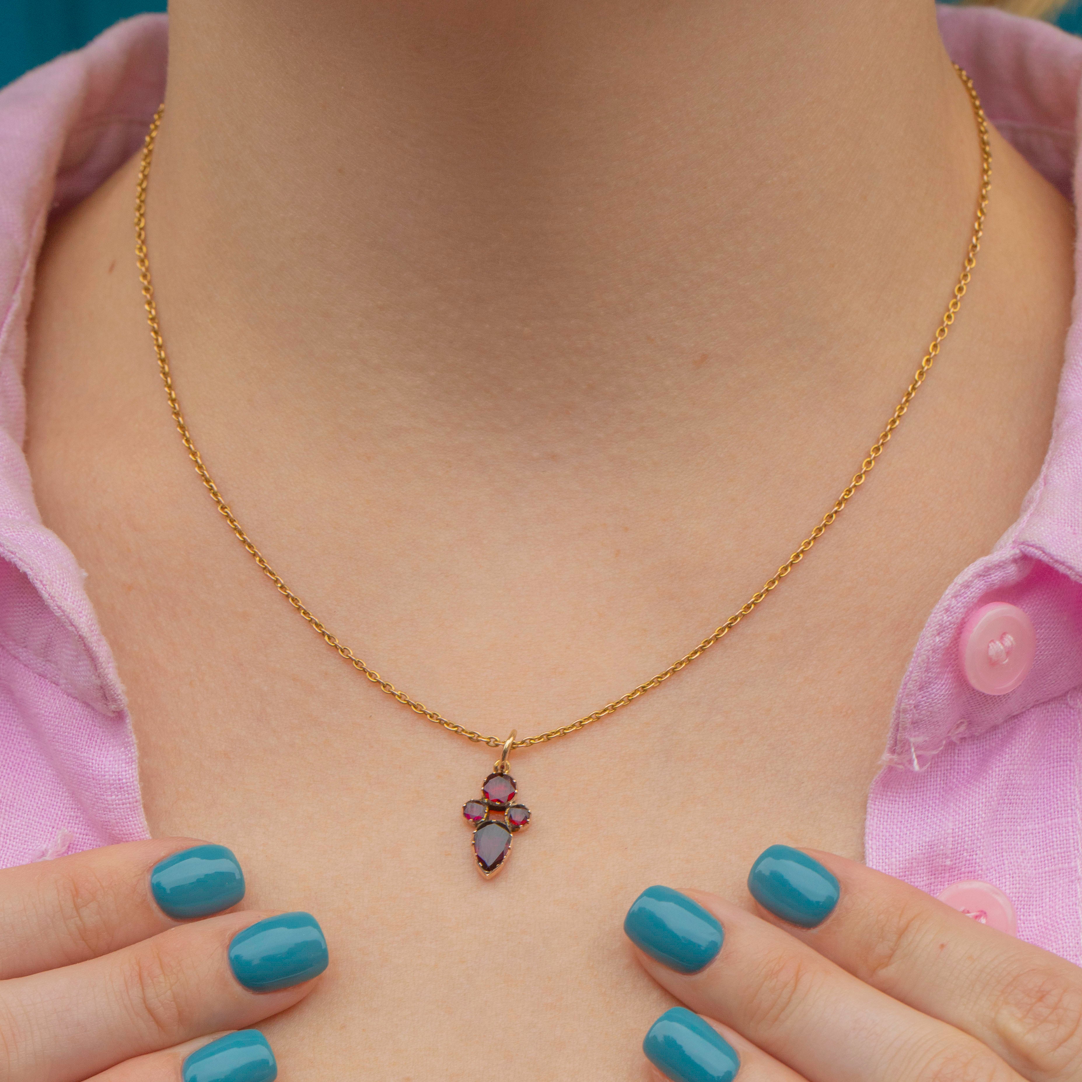 You'll quickly fall in love with this Georgian 9ct Gold flat-cut Garnet charm as much as we have! The juicy red Garnets are a beautiful rich cranberry hue and foiled to catch the eye of all that gaze upon her.