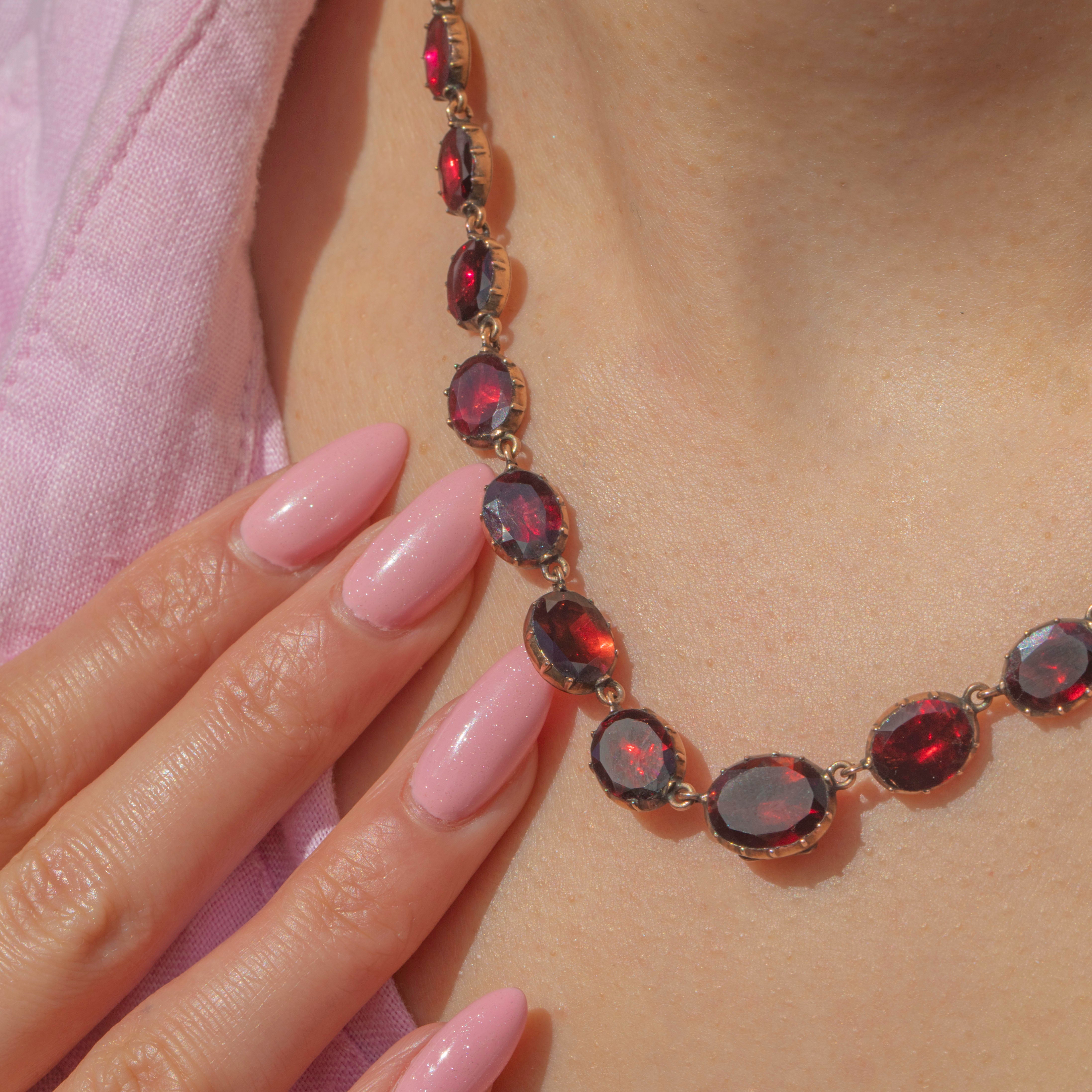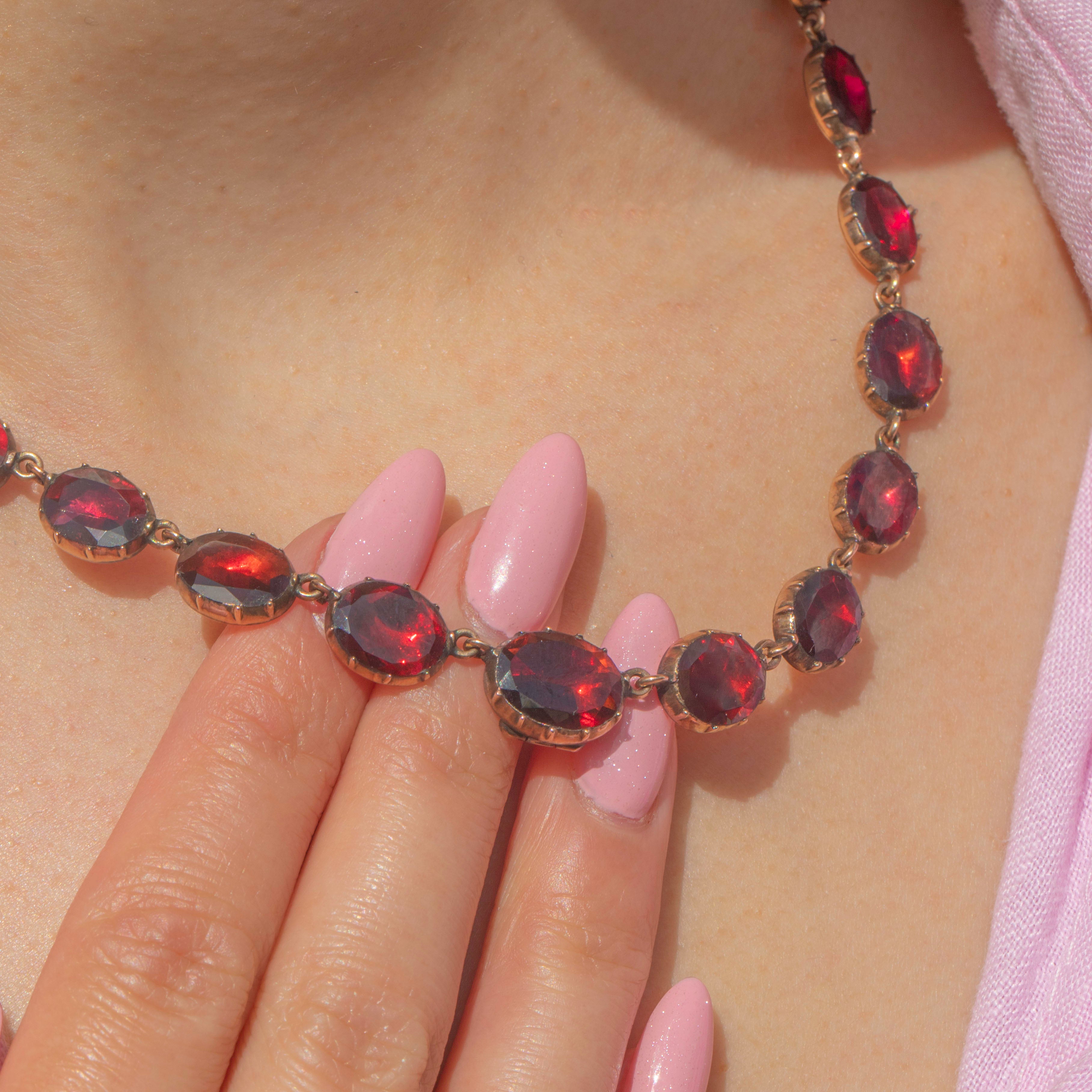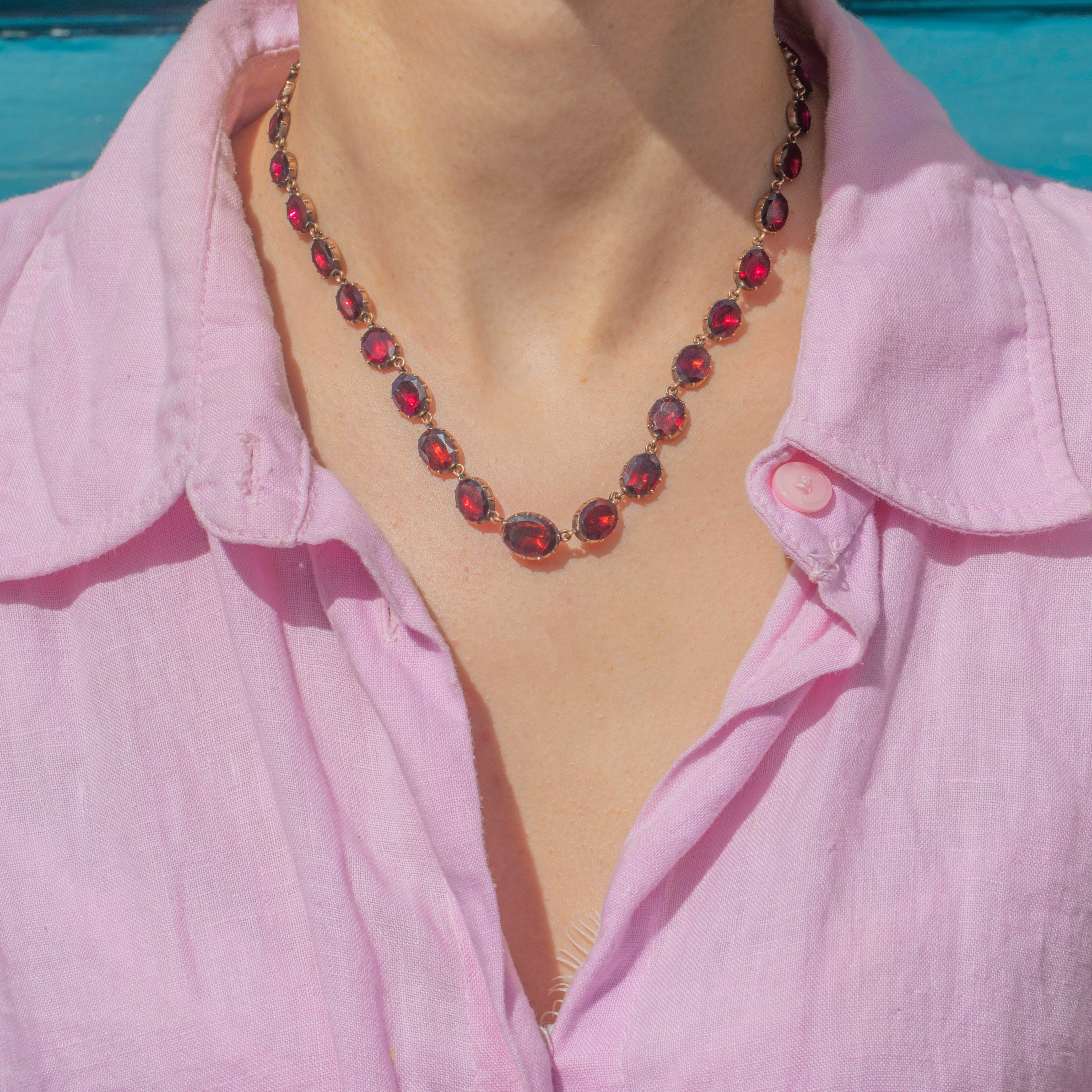 A breathtaking Georgian flat-cut Garnet rivière necklace, offered in wonderful antique condition.