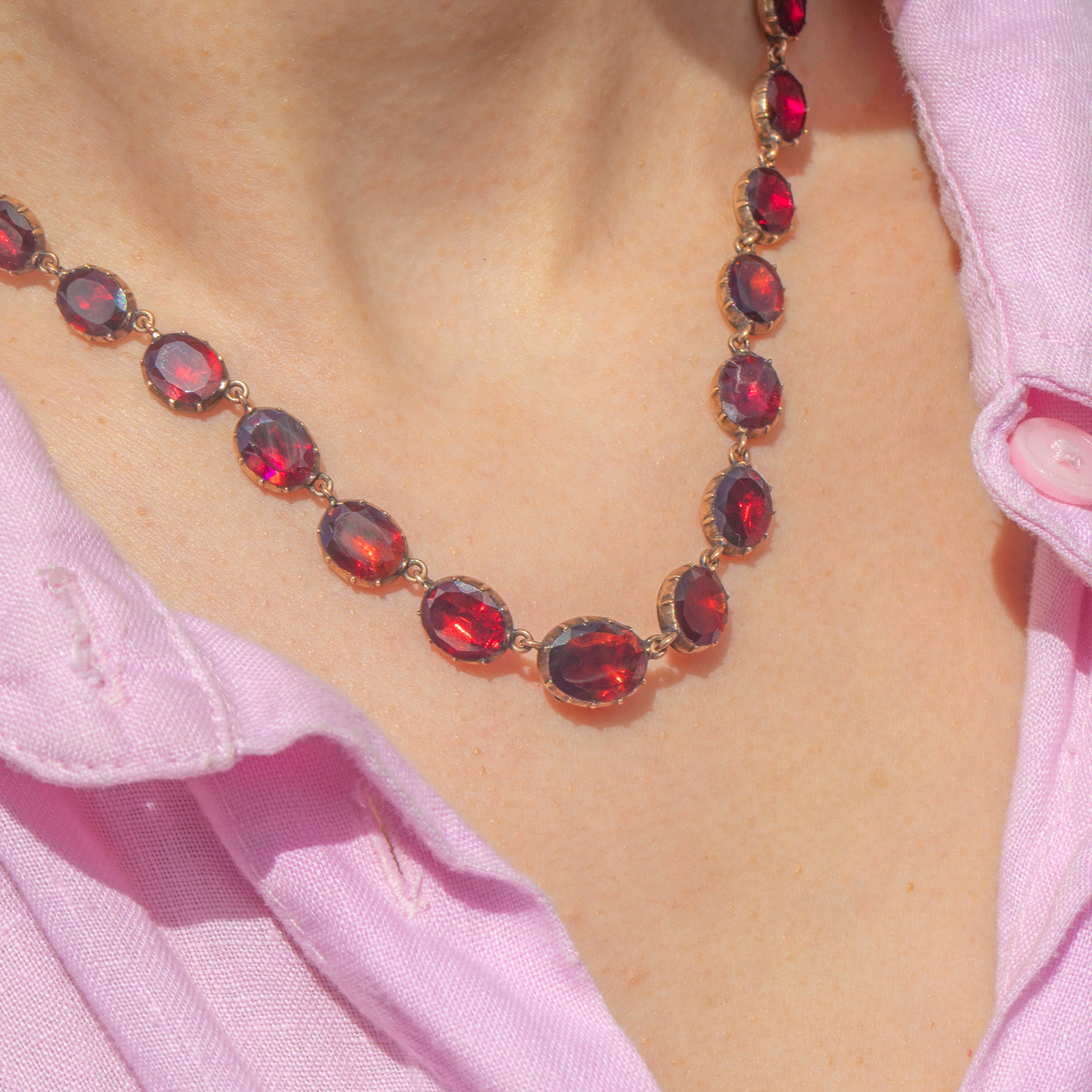 Georgian 9ct Gold Flat-Cut Garnet Riviere Necklace, 21.00ct