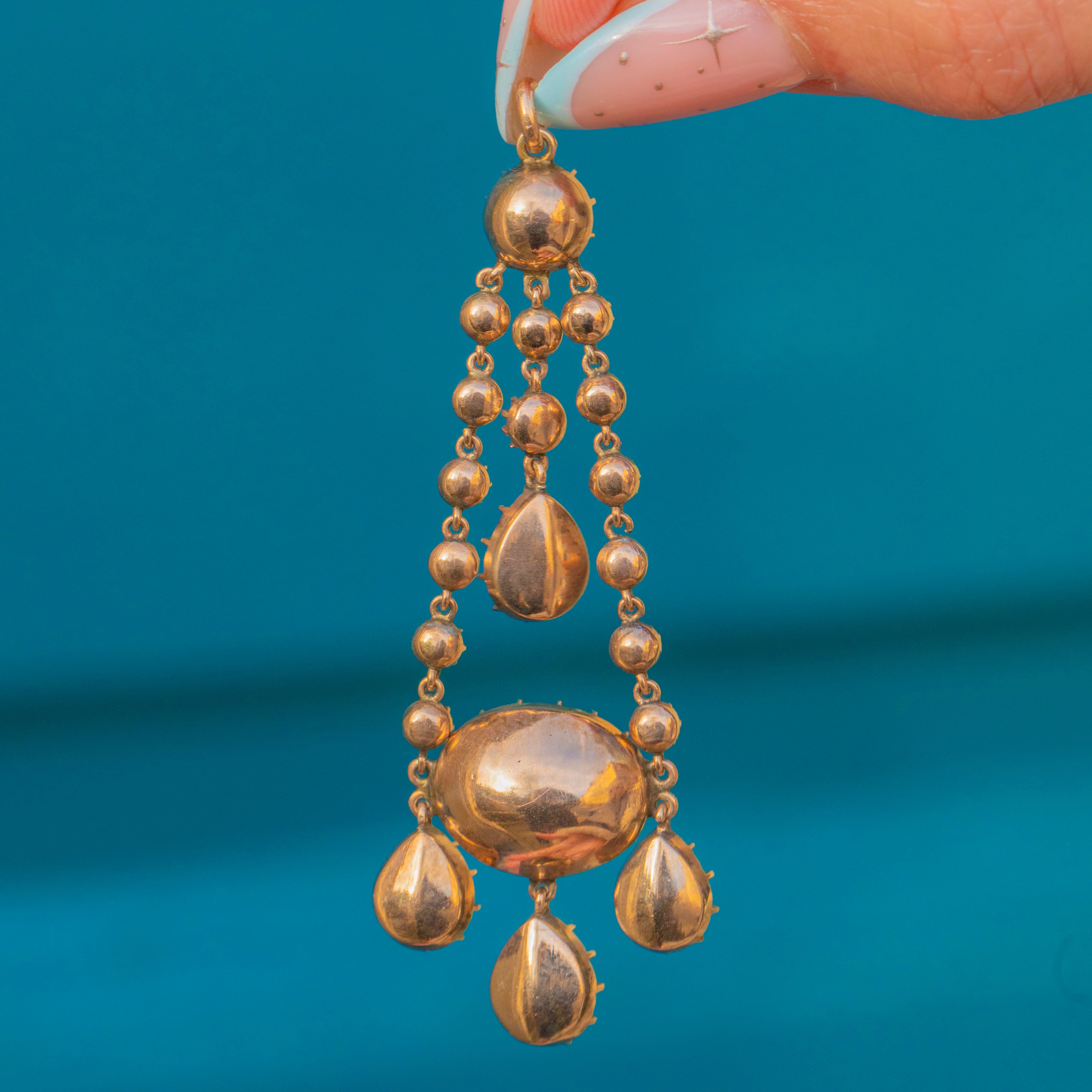 Crafted in 9ct Gold, the design is ornate yet airy, with strict symmetry and neatly executed piecrust settings. Finished with a small round jump ring, it’s a bold, playful jewel that brings historic charm and contemporary vibrancy in equal measure.