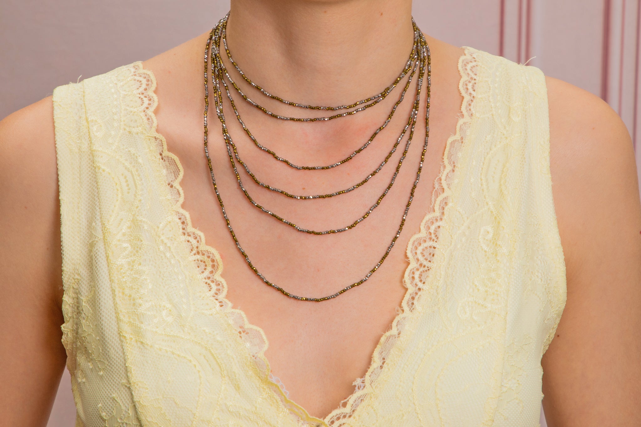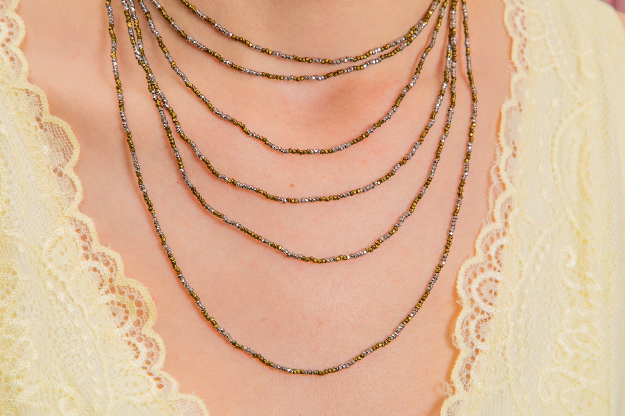 Measuring a generous 97 inches, this Cut Steel necklace is designed to be layered, allowing a multiplicity of stylish looks to be created! The Cut Steel beads are beautifully faceted, each radiant and reflective, possessing individual character.