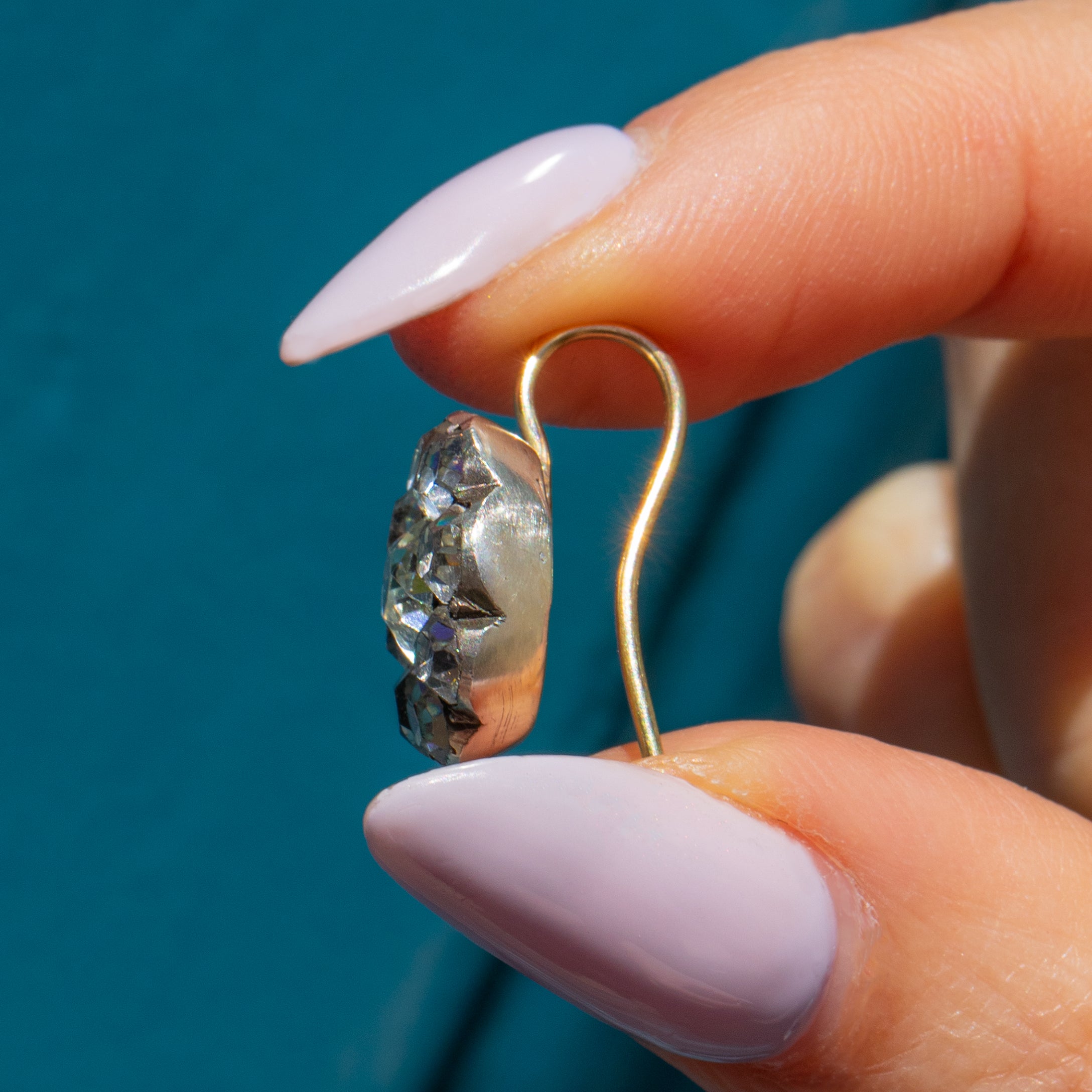 These Georgian Paste flower cluster earrings are an unmissable myriad of sparkles. Their floral clusters are formed of impressive Paste gemstones, each with a characterful charm that sits just below the lobe.