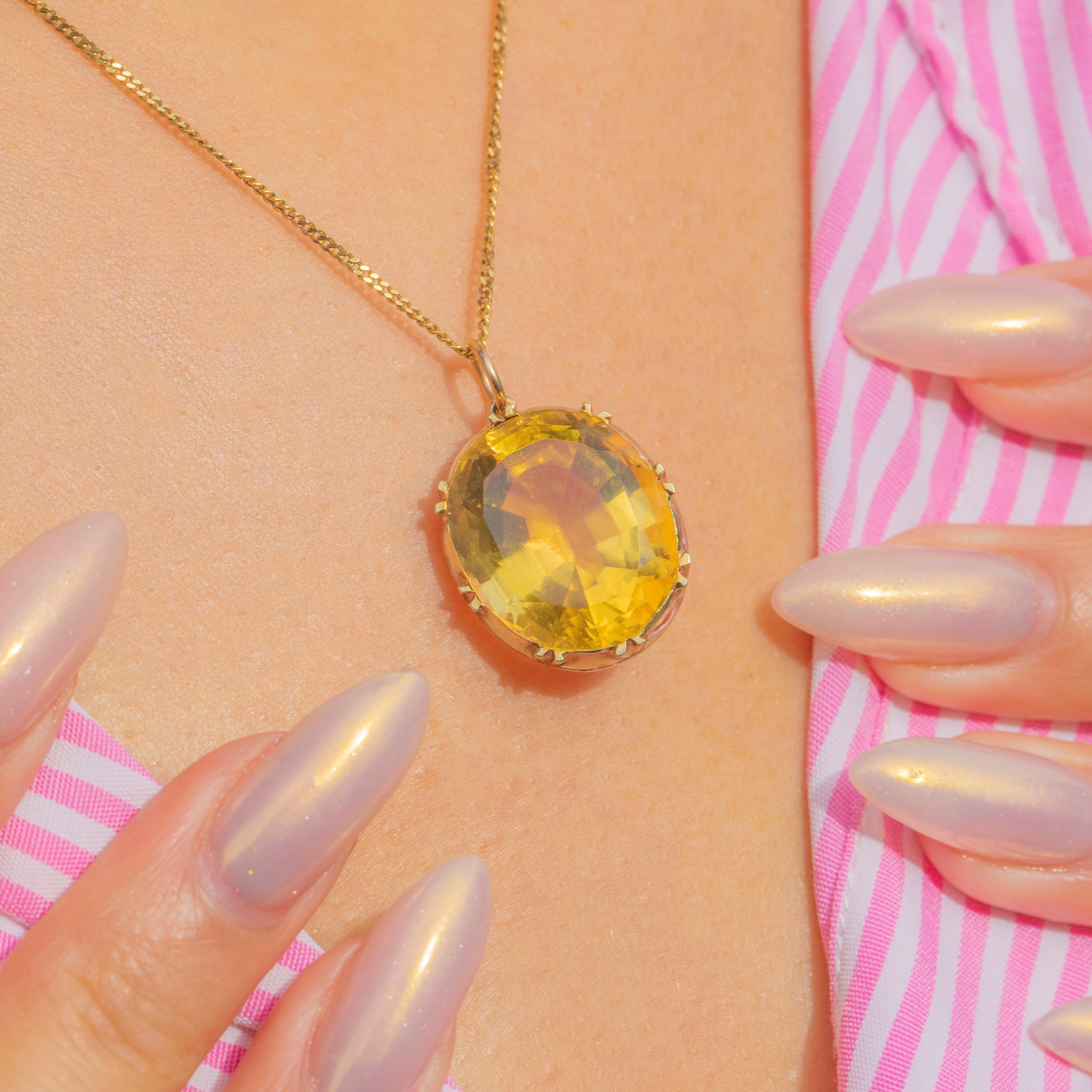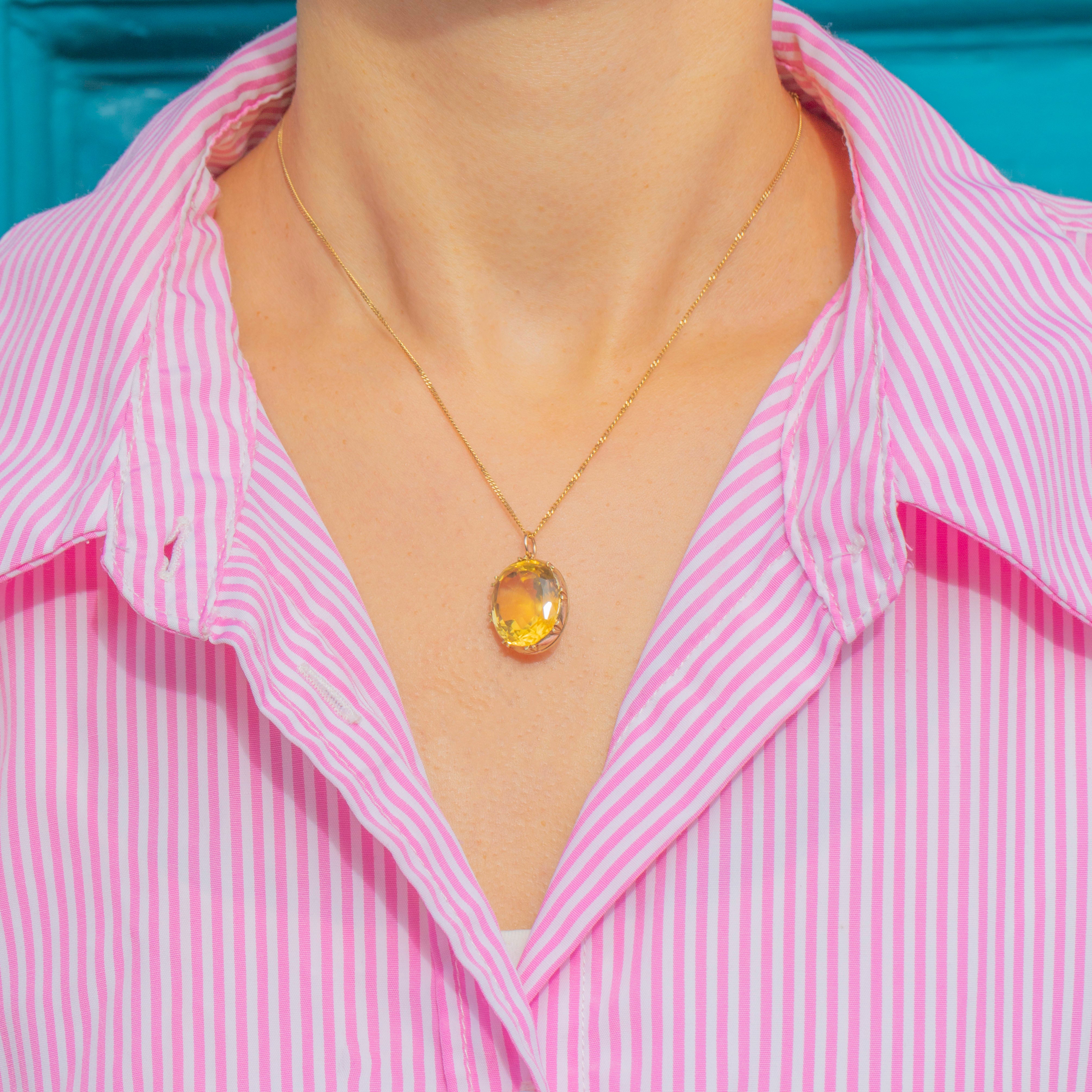 EXCELLENT: The Citrine is bright and clear, with no noticeable chips or abrasions. The facets remain crisp, enhancing the gemstone’s lively brilliance. The Gold setting is strong and secure, with minimal wear, remarkable for its age.