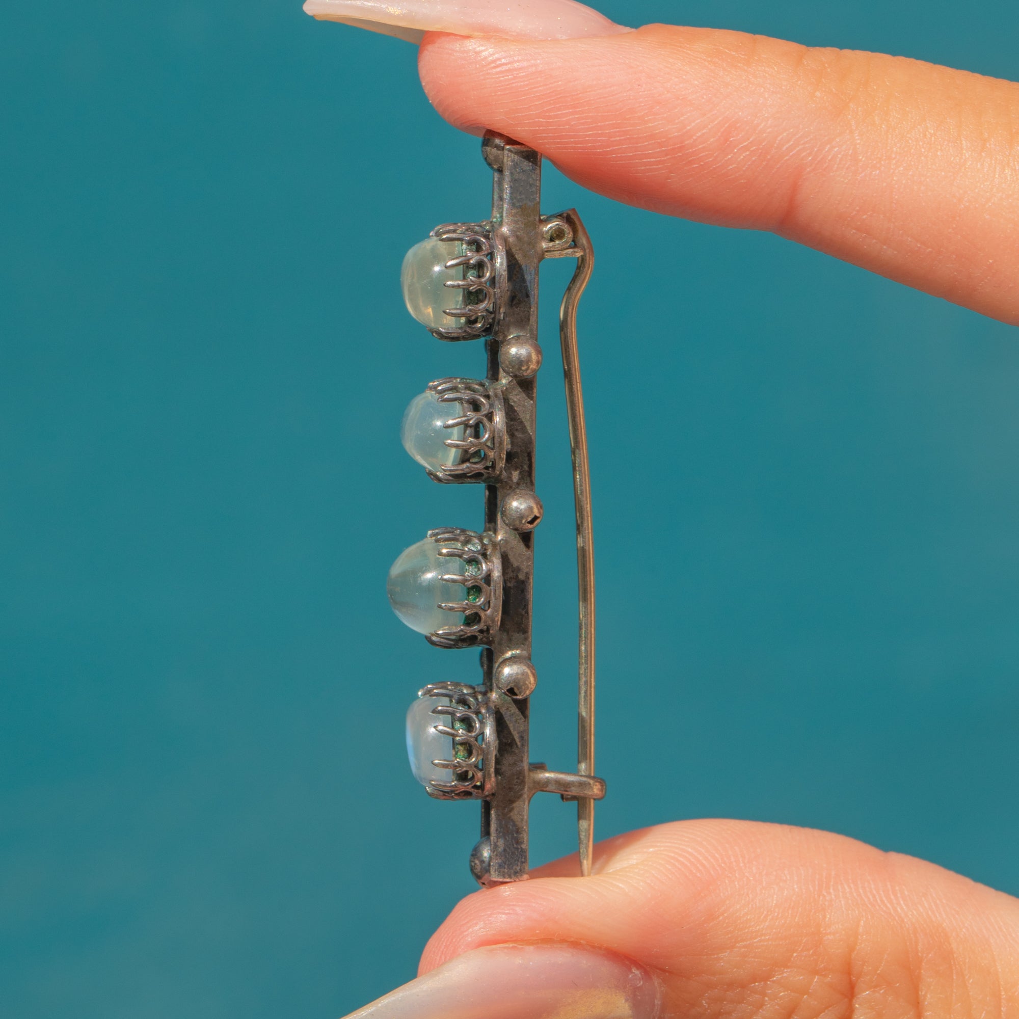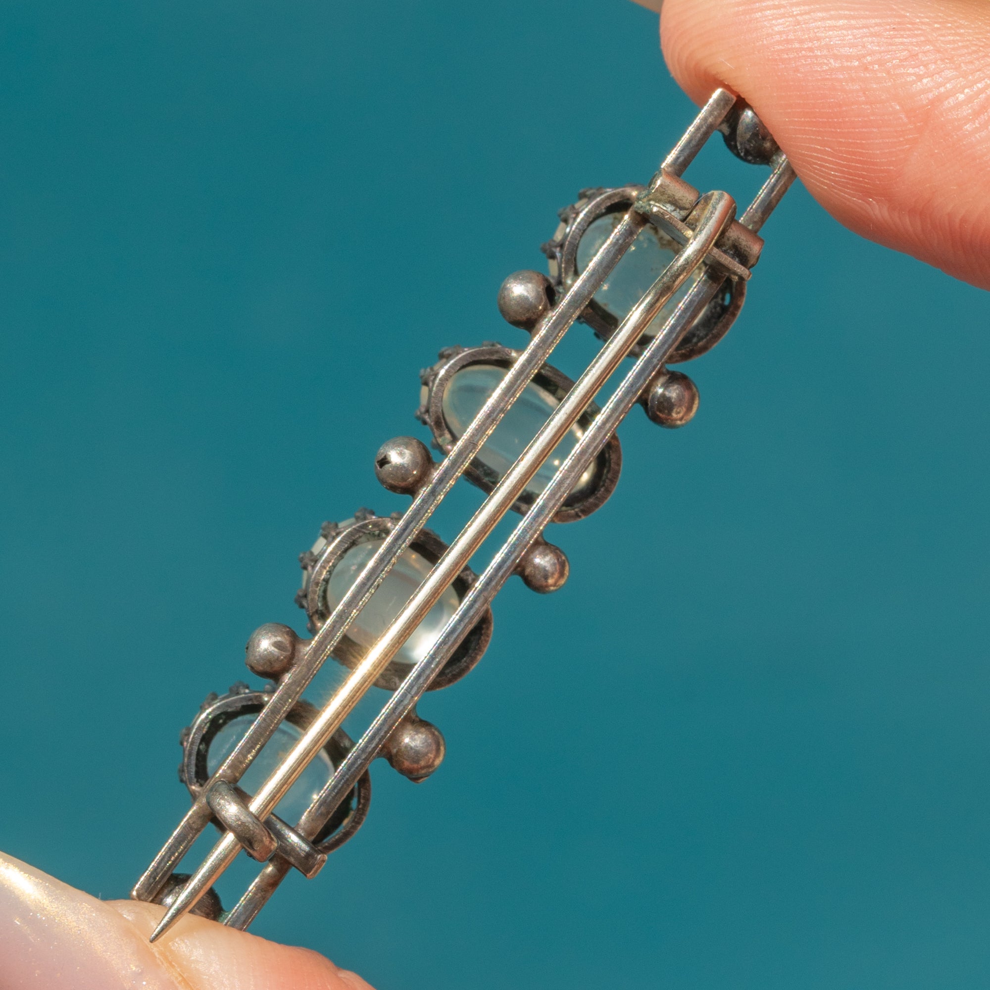 Gothic Antique Silver Ceylon Moonstone Bar Brooch, c.1880