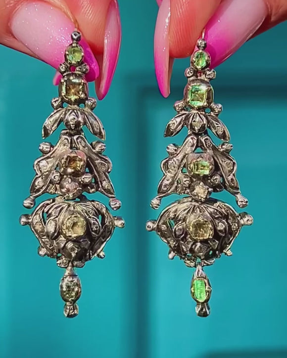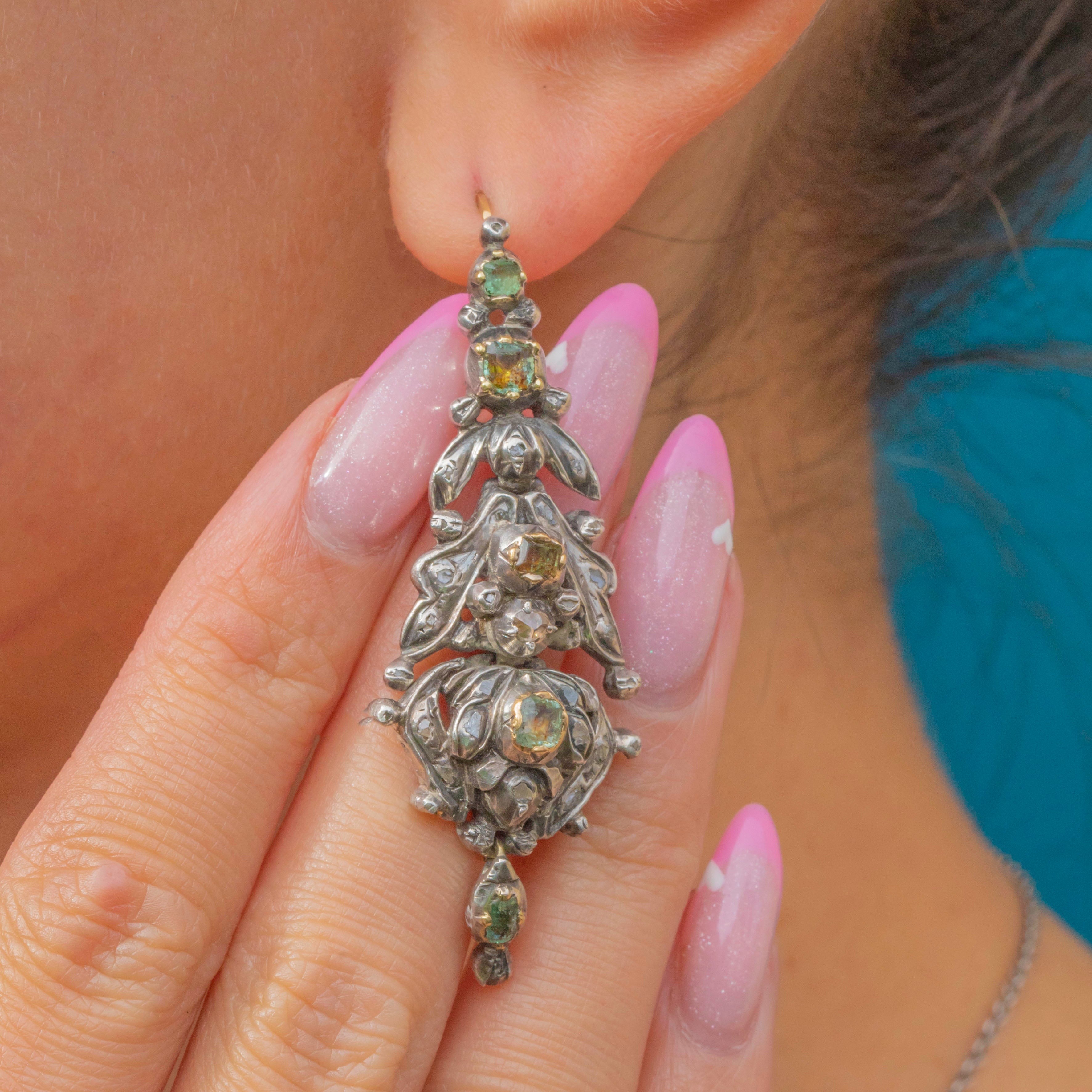 Iberian Emerald & Rose-Cut Diamond Drop Earrings, c.1780-1790