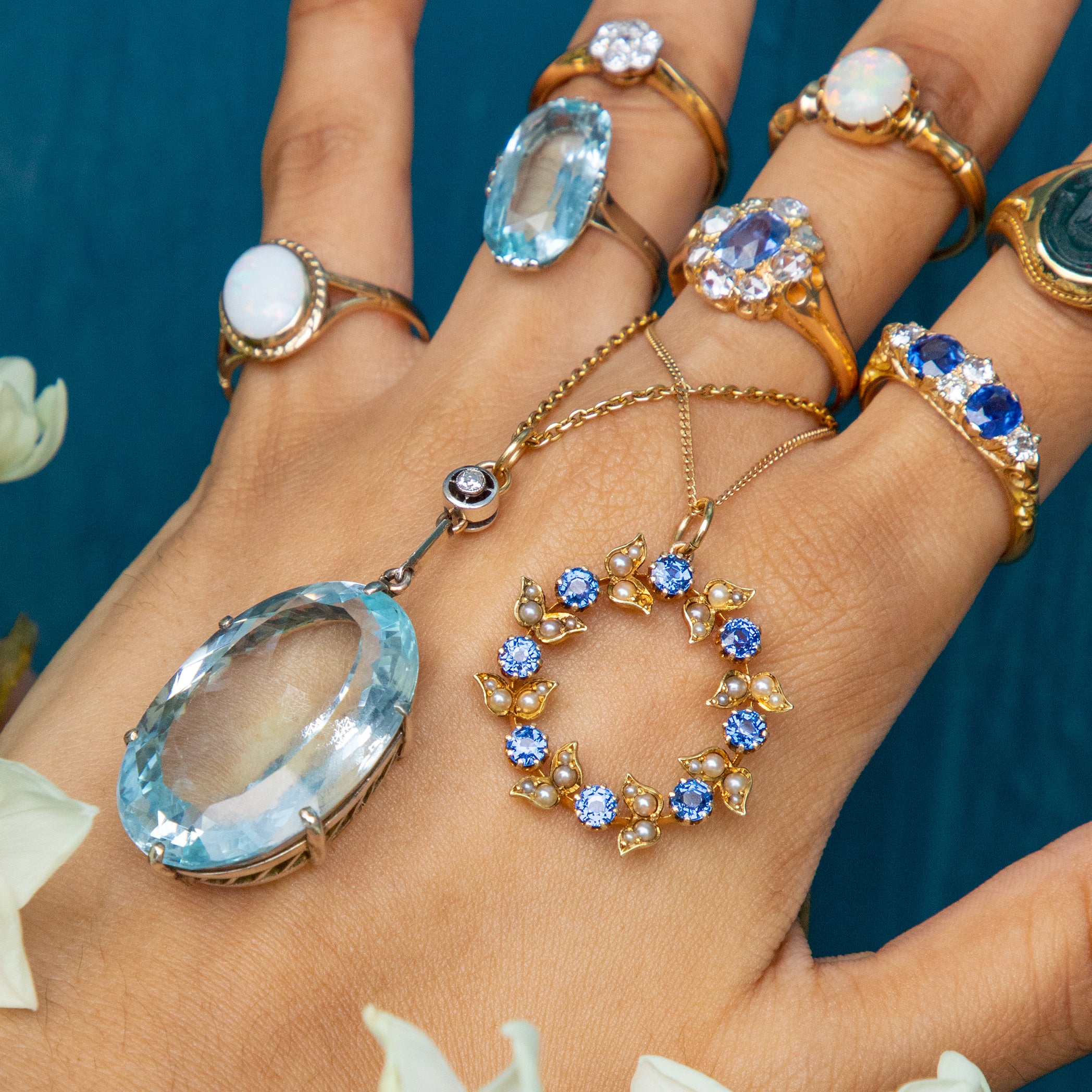 Accompanying the gloriously plump Aquamarine is a dainty Diamond bringing an extra touch of luxury, all set into lustrous Silver and finished with buttery Gold. Suspend this spectacular Edwardian pendant from a fine Gold chain and you'll never stop showing her off!