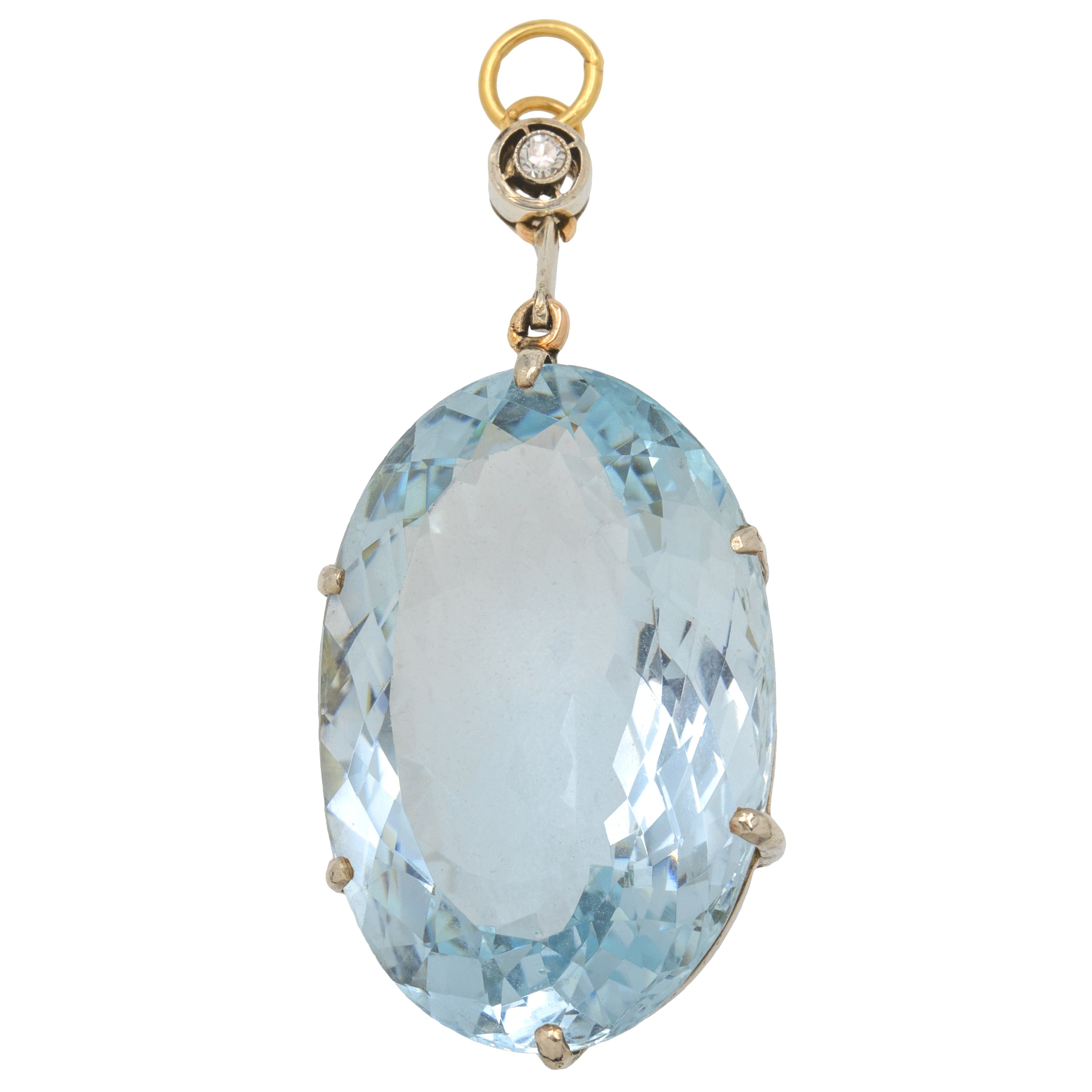 Edwardian Aquamarine Oval Pendant, 39.00ct
