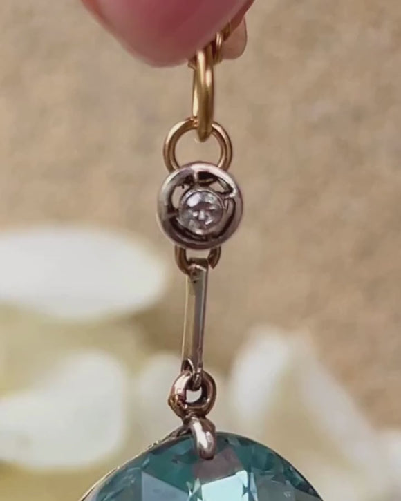 EXCELLENT. This antique Aquamarine charm is offered in excellent condition, she has been meticulously cared for over the past century. The Aquamarine is flawlessly faceted with no chips or scuffs to note, and the Diamond is crisp and free from any fleabites. The Silver is lustrous and holds both gemstones securely in place. The Gold is buttery and each component is securely affixed allowing you to wear this show-stopping antique pendant with confidence!