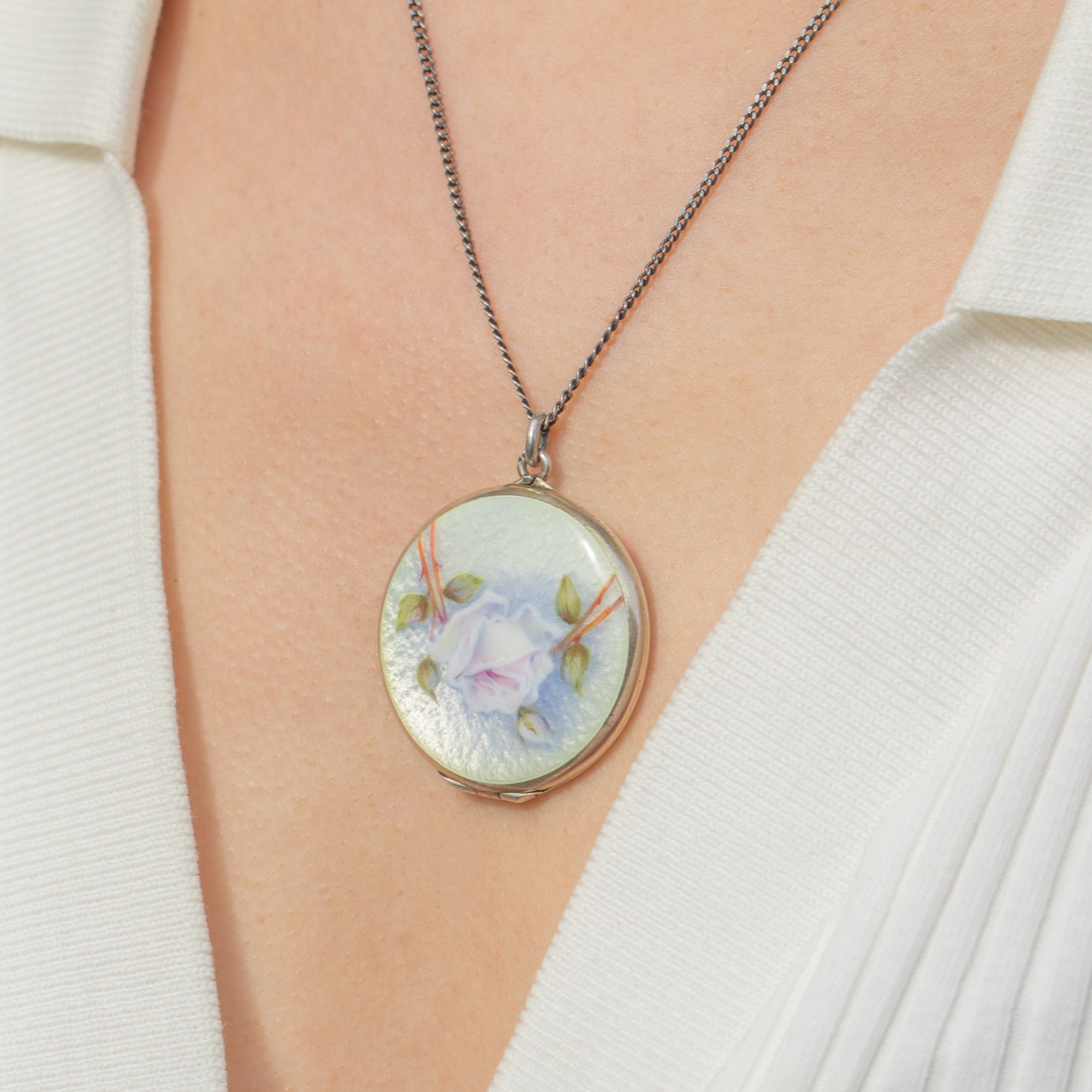 Large Antique Silver Rose Enamel Locket Item added