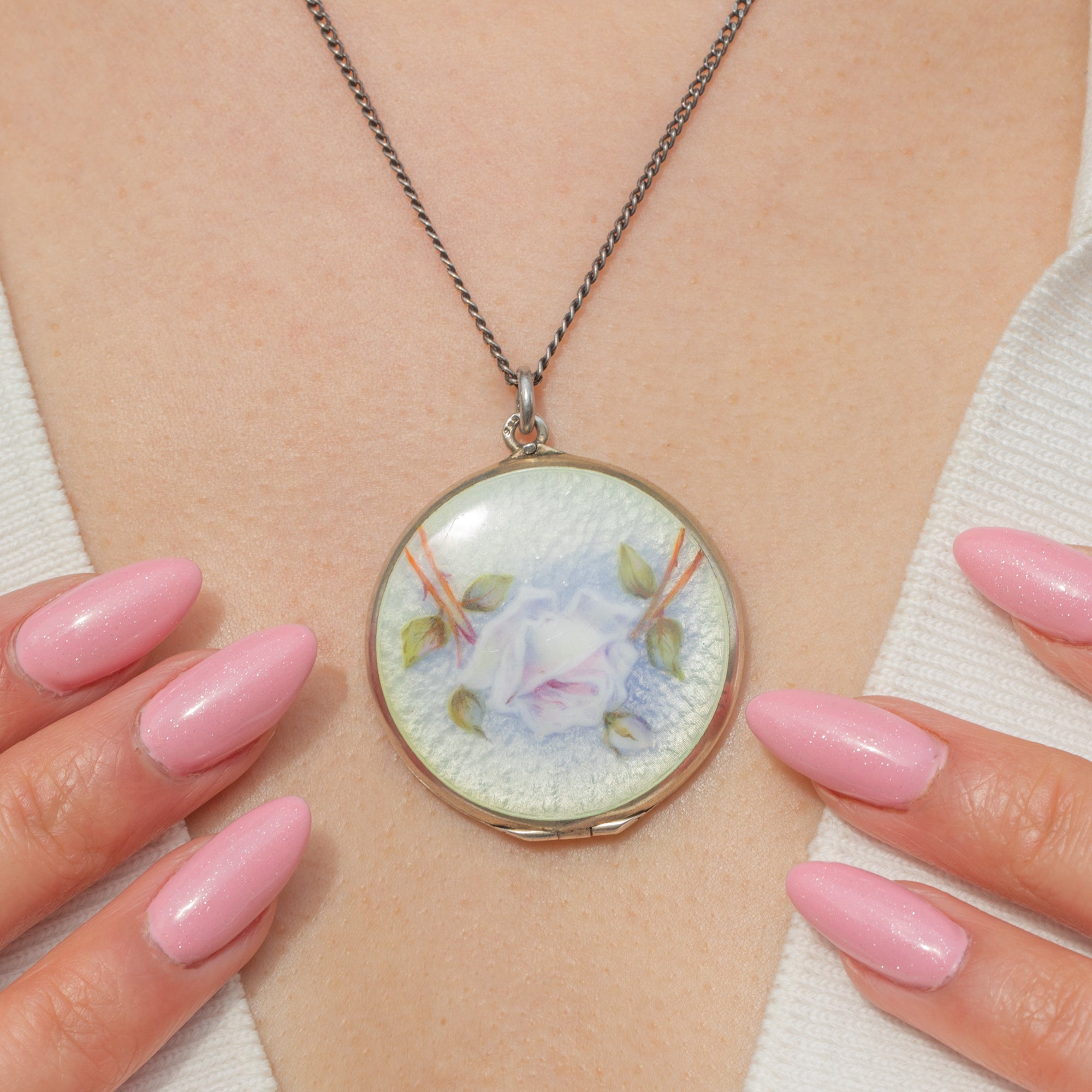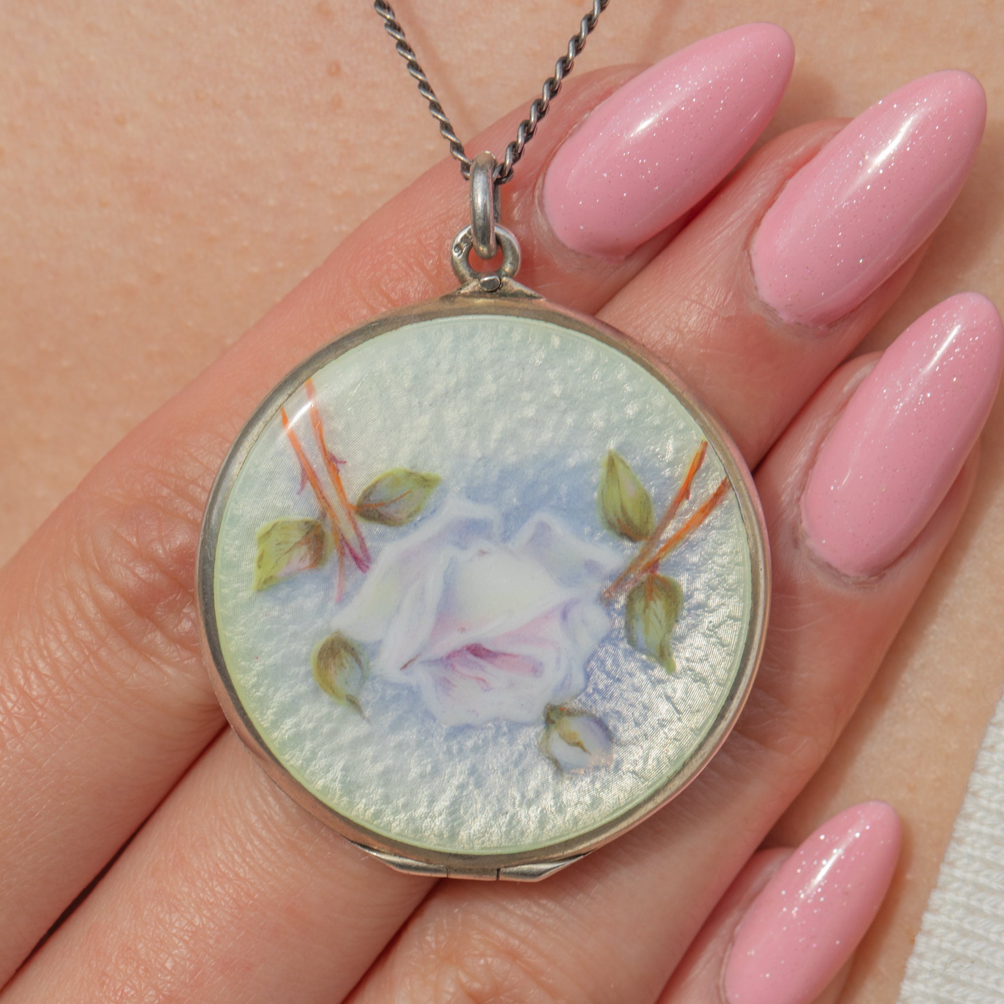 Large Antique Silver Rose Enamel Locket