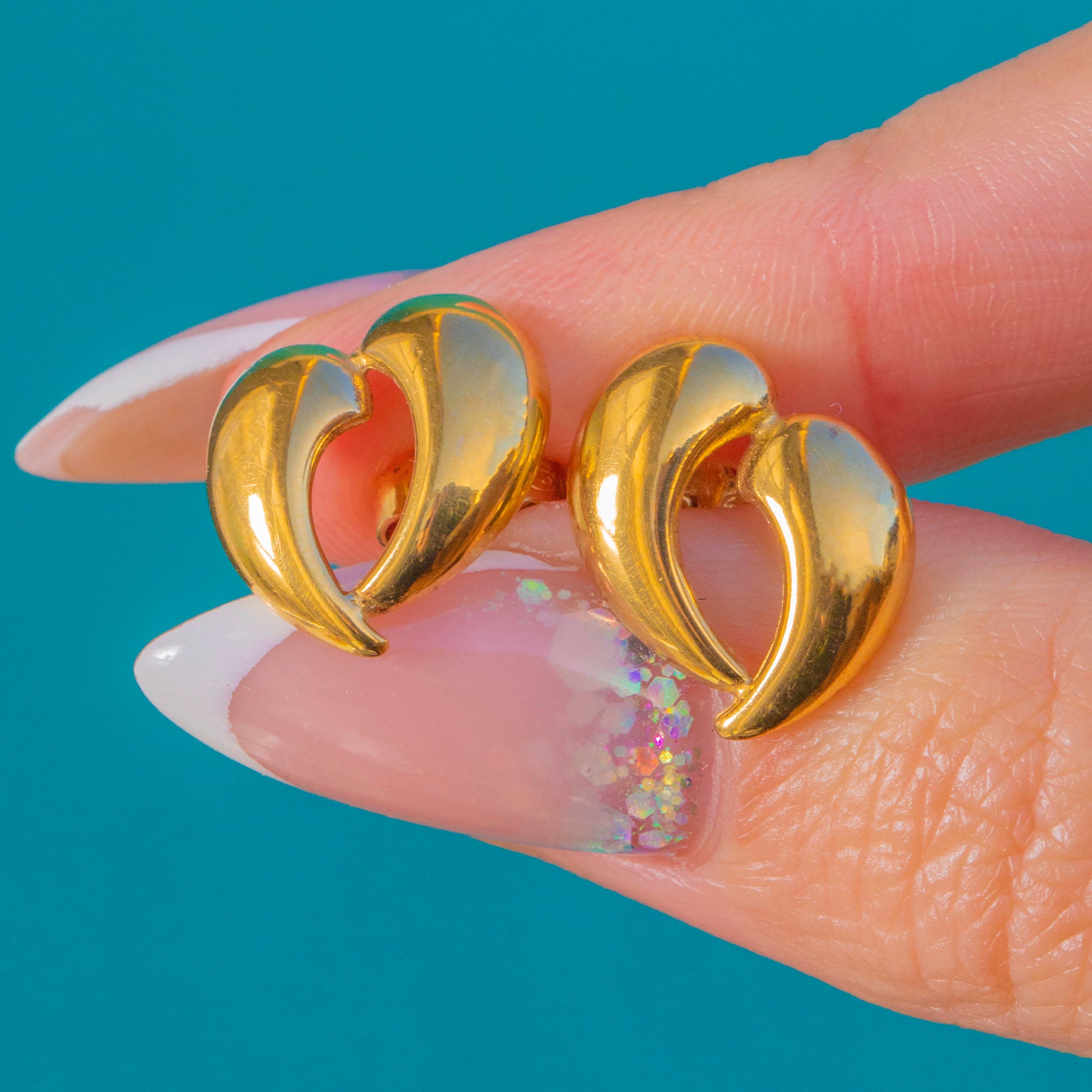 Vintage 9ct Gold Puffy Heart Studs