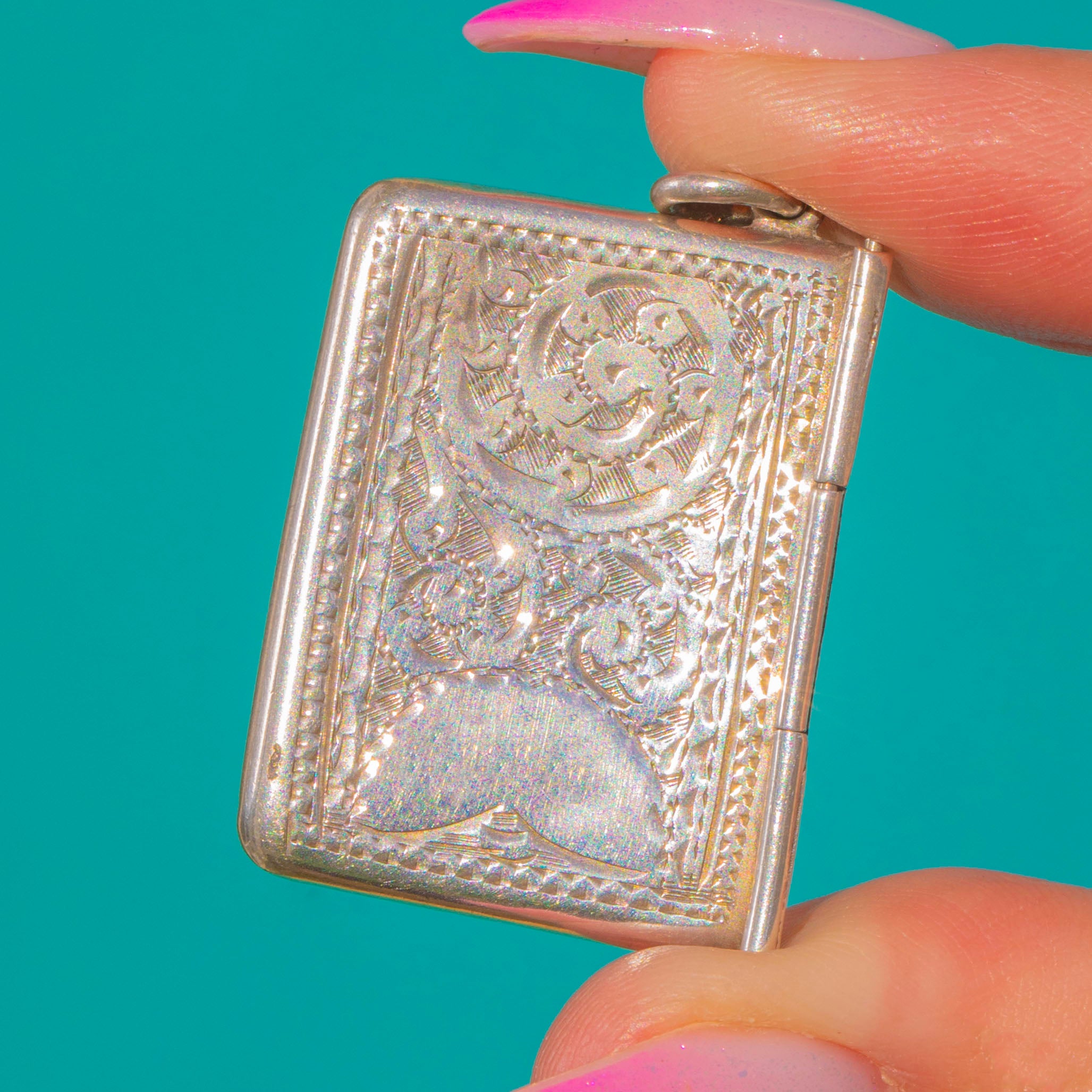 Ornate Antique Silver Engraved Stamp-Holder Pendant, c.1908