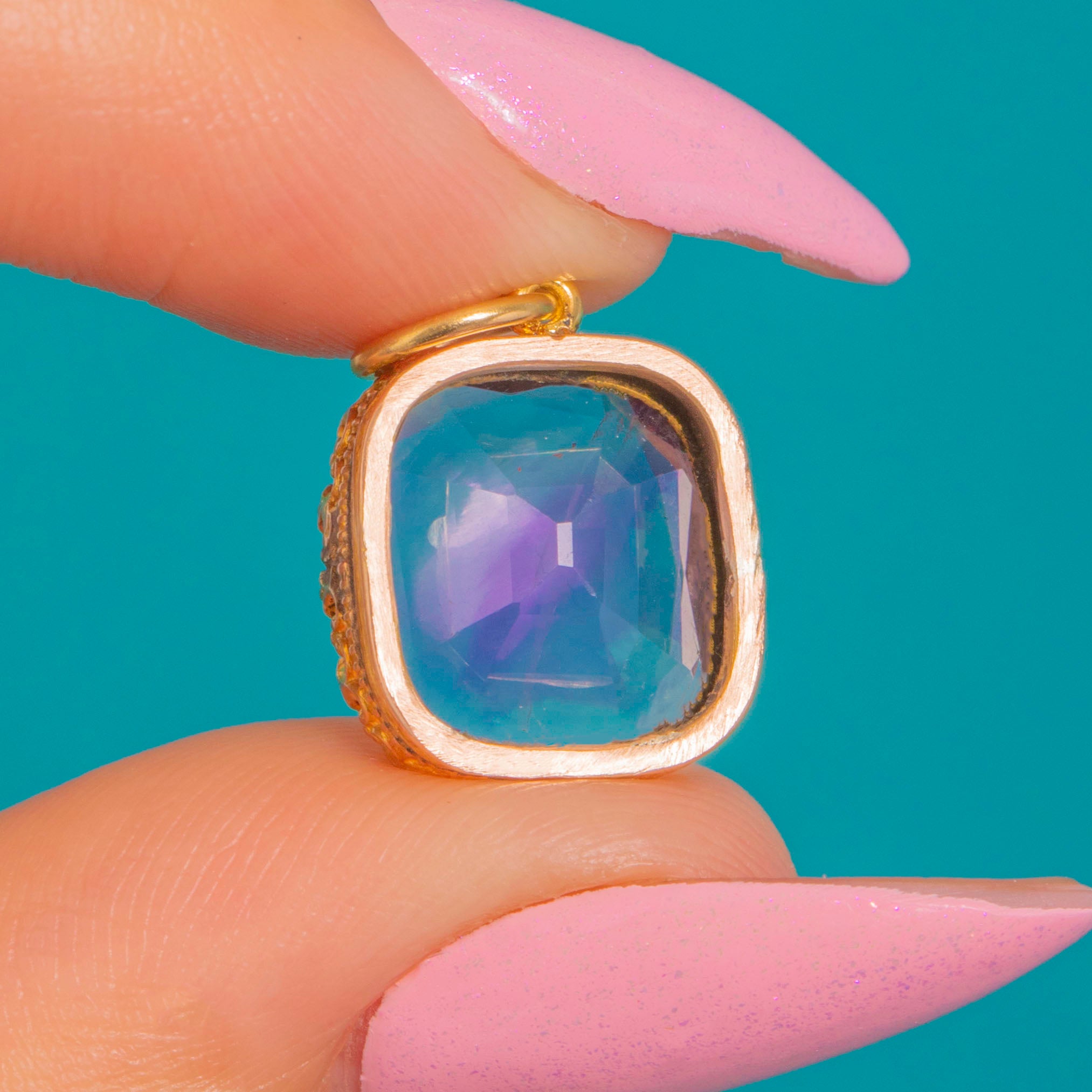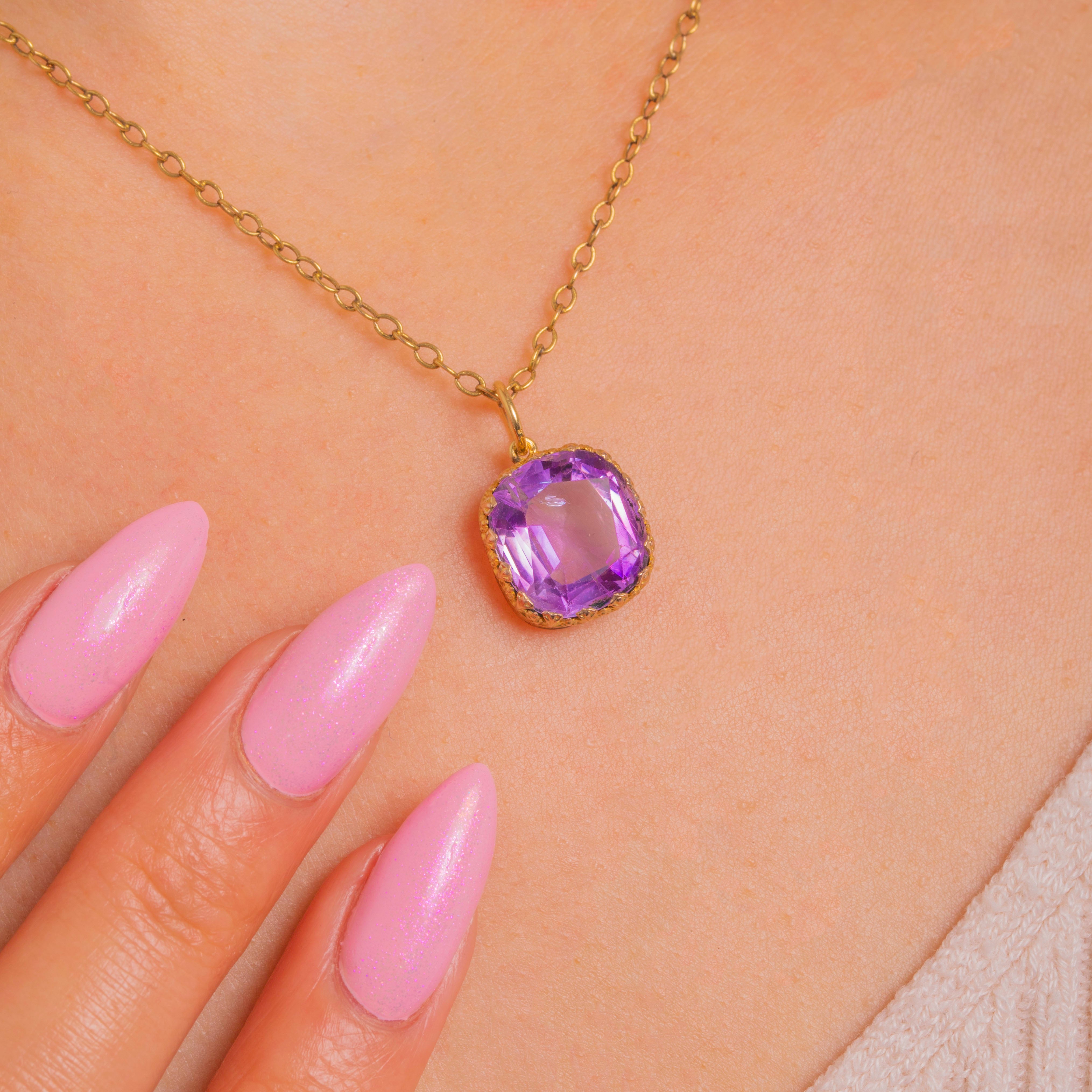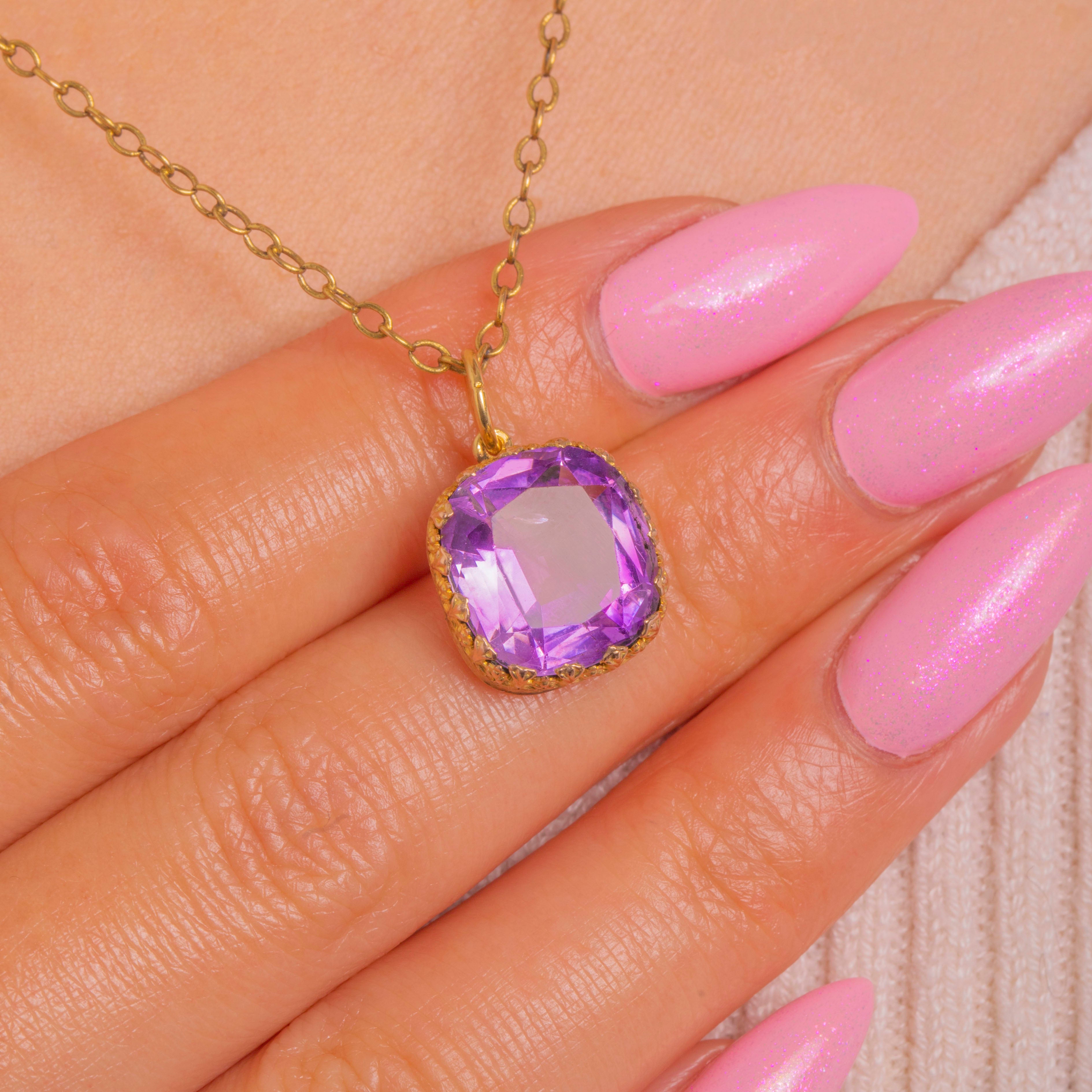 Glowing with rich purple hues, this Victorian Amethyst charm is crafted in 15ct Gold and captures the era’s romantic sensibility in a refined, wearable form. The cushion-shaped Amethyst offers vivid colour and elegant presence, set to show off its faceting and depth of tone.