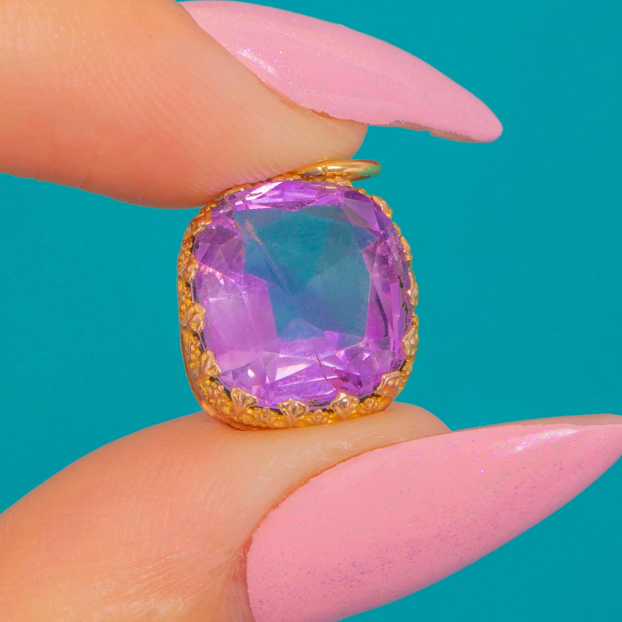 Ornate Victorian 15ct Gold Claw-Set Amethyst Charm Item added