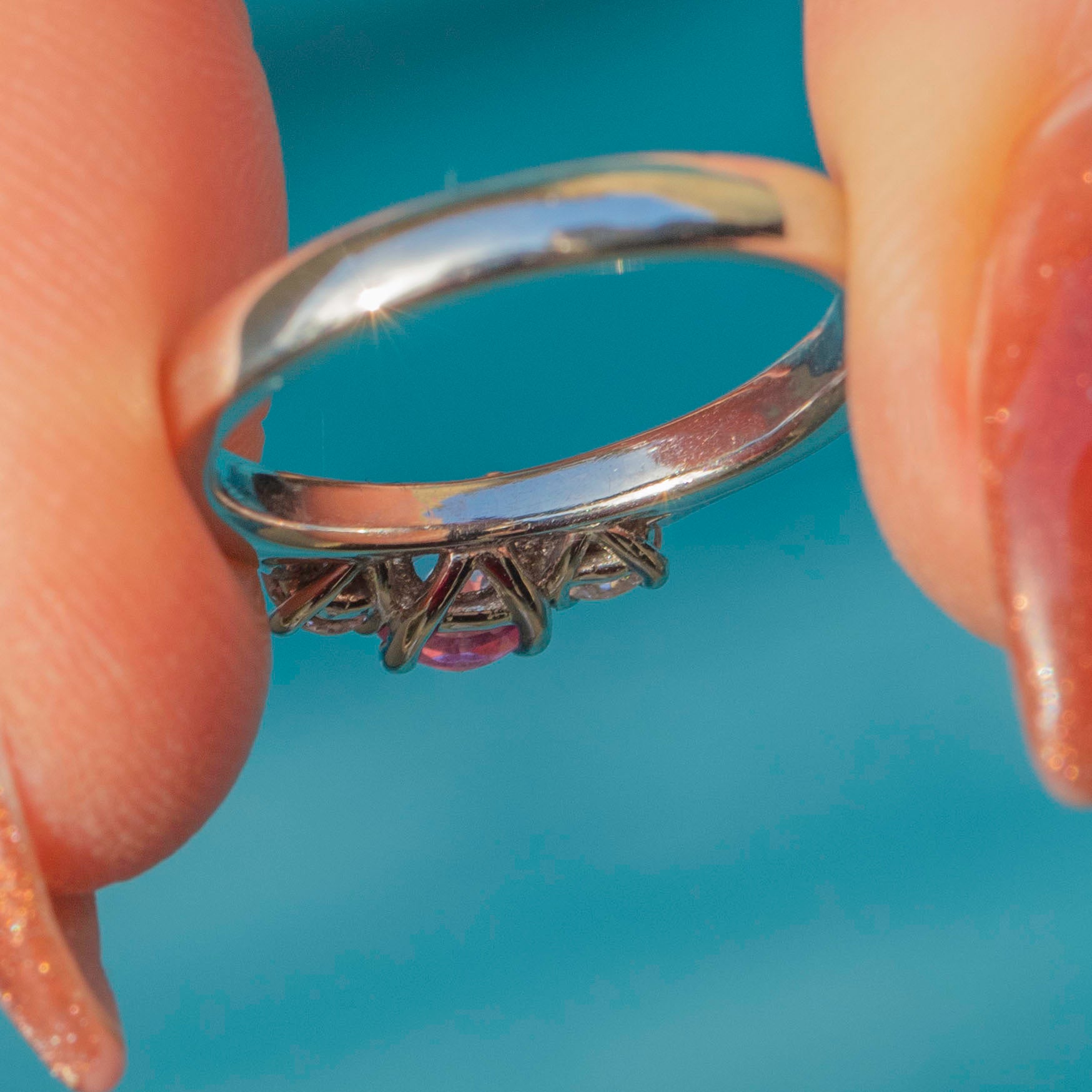 Platinum Pink Sapphire Diamond Trilogy Ring Item added