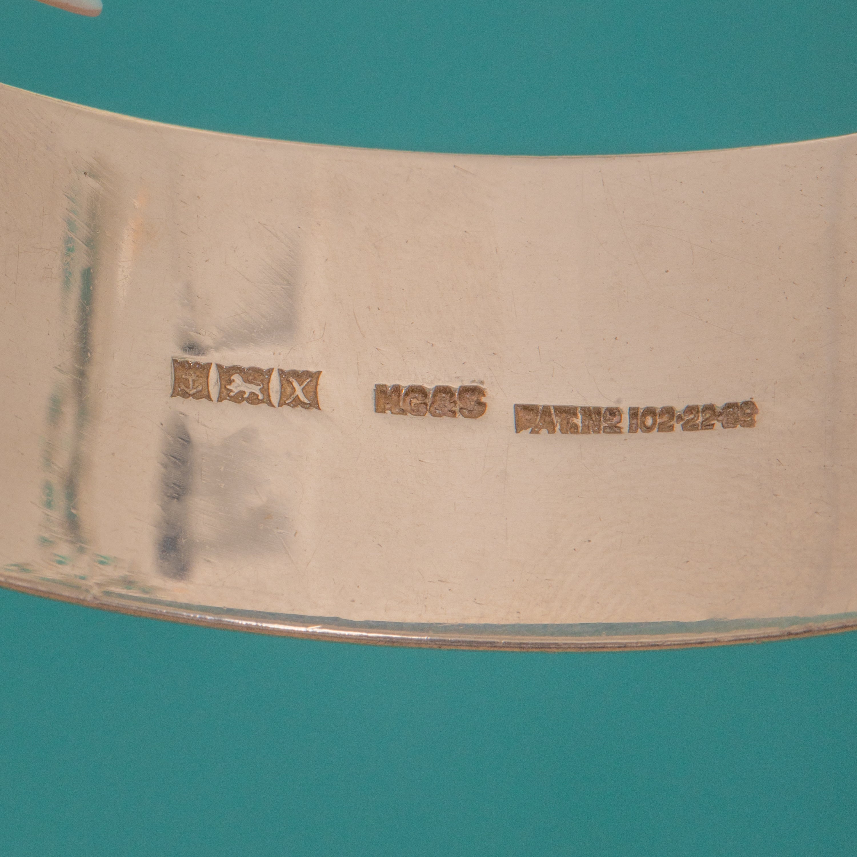 HALLMARKS: Birmingham Assay, Date letter “X” for 1972, Lion passant for Sterling Silver, Maker’s mark “MG&S”.