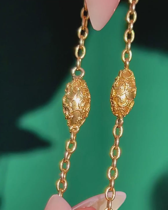 RARE 47" Tagged 15CT Gold Antique Chain with Cannetille Lozenge Terminals