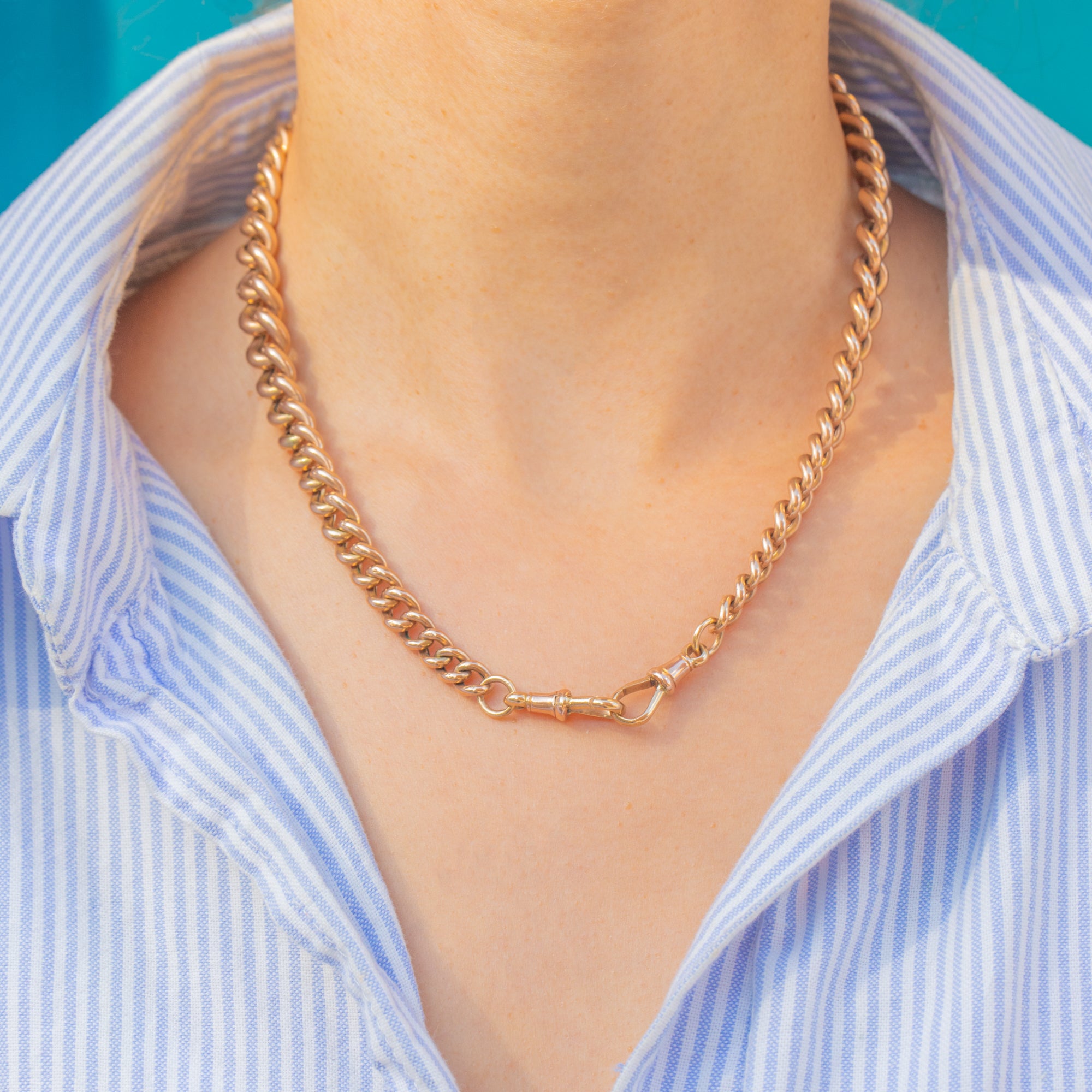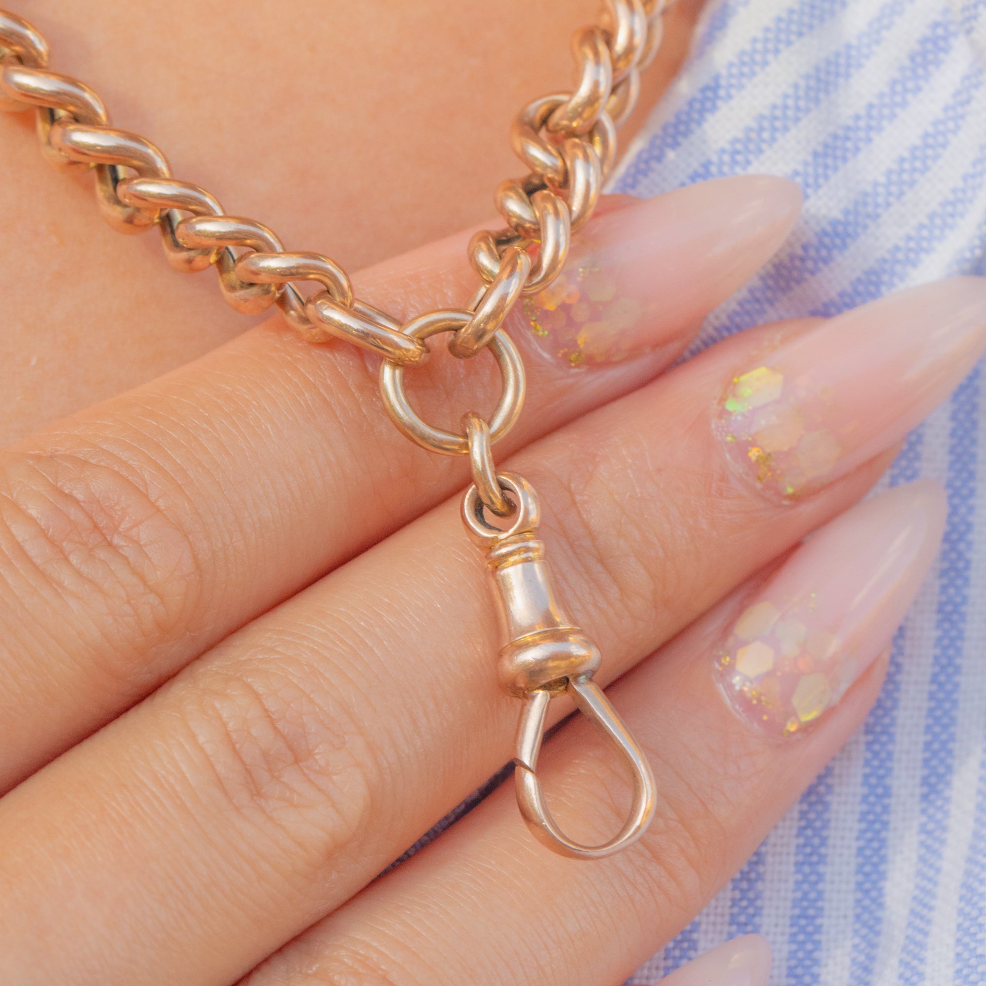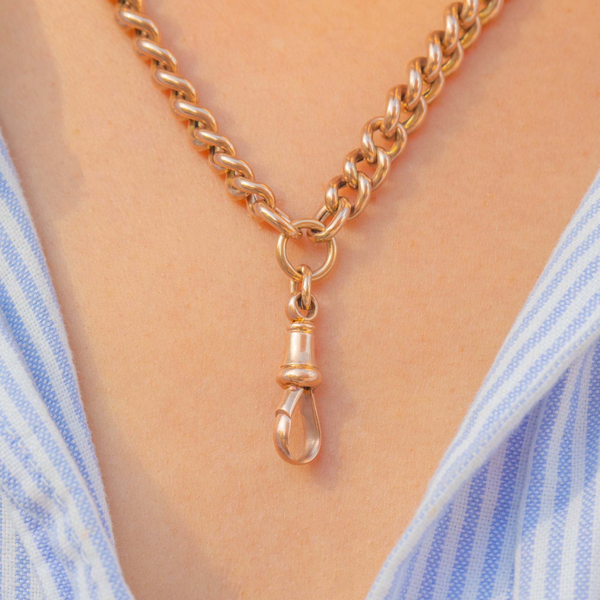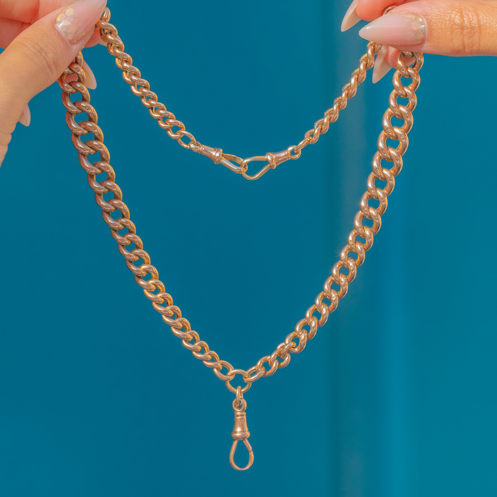 An impressively weighty Victorian Albert chain in rich 9ct Gold, complete with an unusual trio of dog-clips that make this antique chain endlessly versatile and customisable.