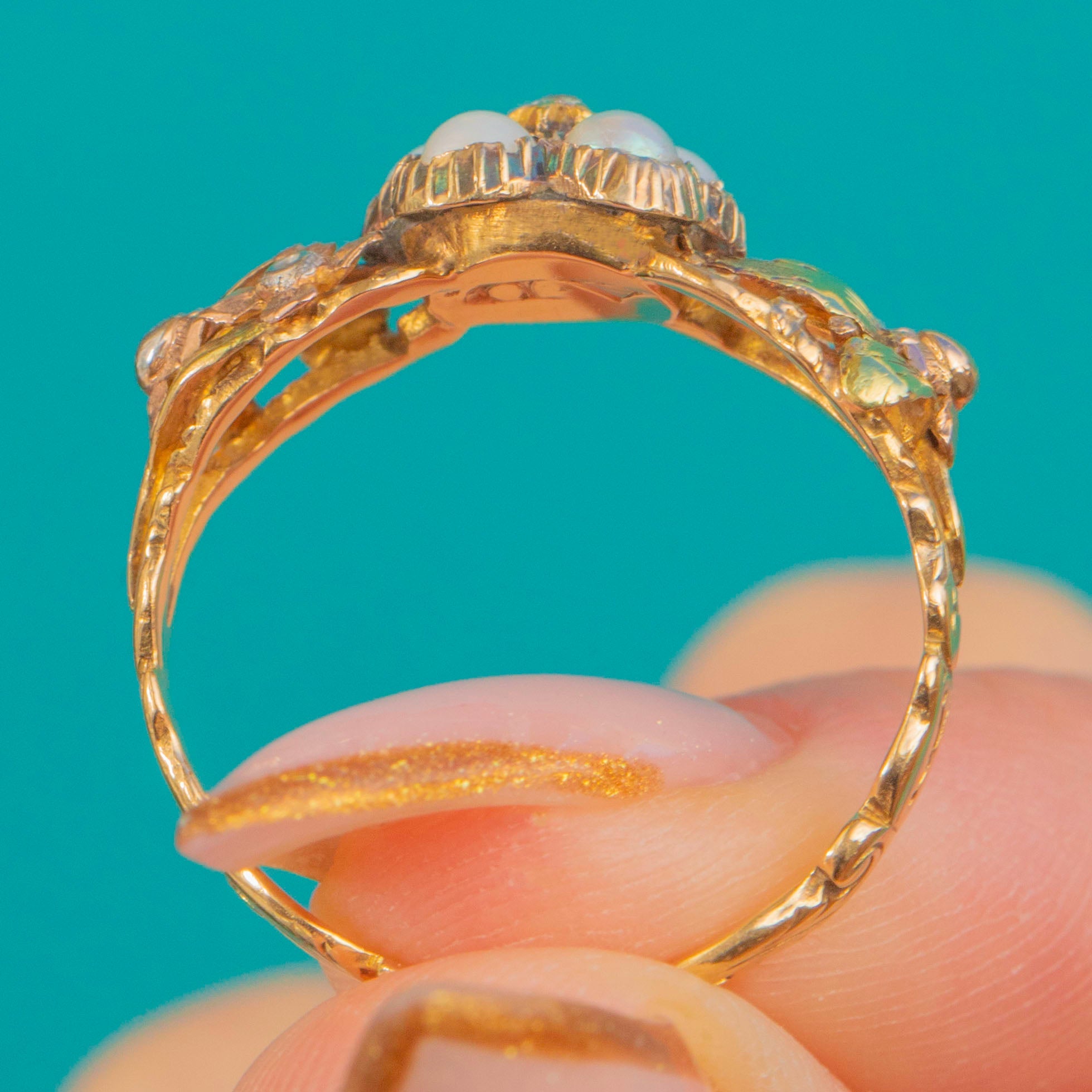 Regency Era Georgian 18ct Gold Rose & Yellow Gold Pearl Cluster Ring, c.1830